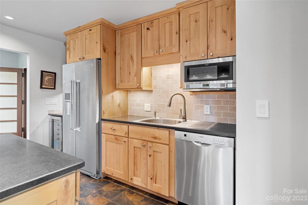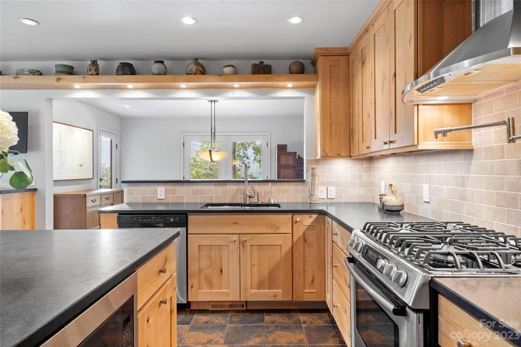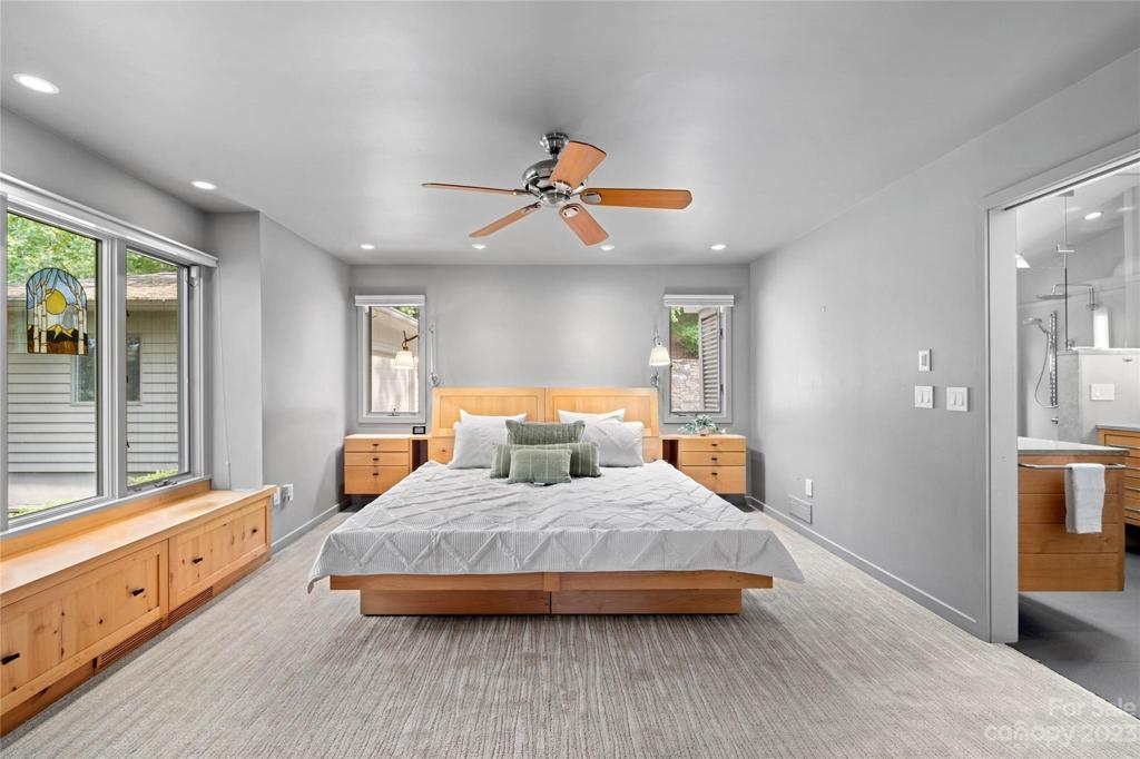 Welcome to your dream home in highly sought-after N Asheville/Beaverdam.Step inside and prepare to be amazed by the chef's kitchen, where culinary dreams come to life. Adorned with custom alder cabinets, this kitchen effortlessly blends style and functionality.The sleek IPE hardwood flooring sets the stage for an elegant and inviting atmosphere throughout the home.Relax and unwind in the spacious living room with a cozy gas fireplace. Imagine curling up with a good book or enjoying intimate gatherings with loved ones in this warm and inviting space.For those seeking an additional retreat, the den offers a tranquil escape with its own gas fireplace. Step out onto the small balcony offering a private oasis to relax on.The primary bedroom is a true sanctuary, featuring custom alder closets that provide ample storage space. The main bathroom offers a wet room that is truly spa-like. The combination of the hot tub and retractable awning ensures that your outdoor space is truly a haven.