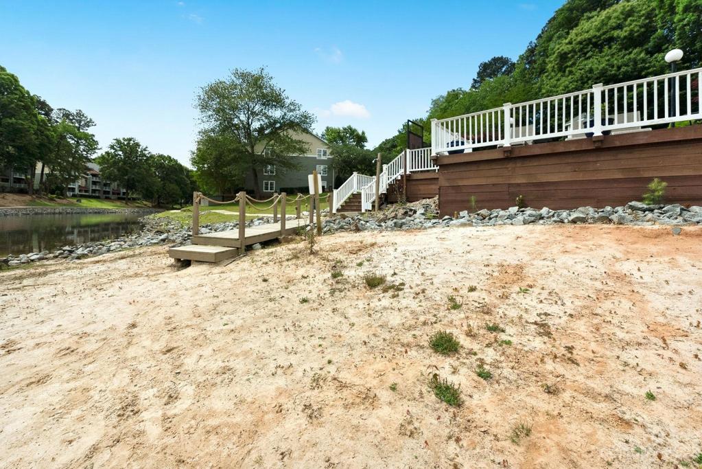 Waterfront condo, situated on the first level and a prime corner unit. Imagine coming home each day to a masterpiece perfectly set on a lush, immaculate landscape. This classic 2 bed, 2 bath gem is your personal sanctuary. Find your inner zen in the master bath's luxury shower, lounge on your private back porch, or entertain guests in the kitchen complete with granite counter tops and luxury appliances. Sitting in the heart of Cornelius, this condo is as convenient as it gets -- walking distance to grocery stores, shops, restaurants, the boat dock, community pool, clubhouse and a lakeside beach -- while still tucked away in a quiet, pristine neighborhood. NOTE: