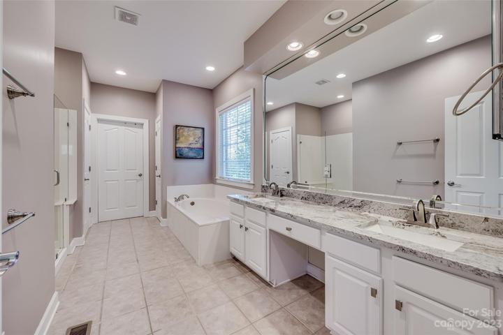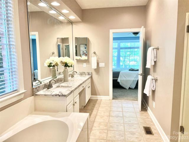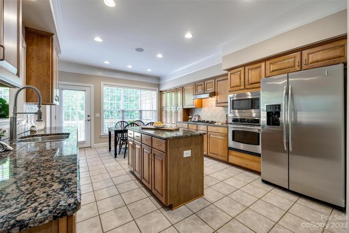 END UNIT W/ BASEMENT in Ivy Ridge at Ballantyne subdivision. Gorgeous brick town home, 2 car garage w/ Tesla charger installed. Primary Bedroom on the main level w/tray ceiling, large primary bath w/ glass shower, garden tub, granite tops, walk-in closet, spacious open kitchen w/ granite countertops and access to the balcony w/natural gas line for grill, 2 large bedrooms and a loft upstairs. The main level also features dining room w/ tray ceiling, great room w/ vaulted ceiling and gas fireplace. Hardwoods and tile on main level with carpet in bedroom and upstairs. Walk-in attic with lots of storage. Beautiful fully finished walk-out basement that features a full and half bathroom, large living area, surround sound, fitness room, bar/entertainment, extra bonusroom currently being used as a bedroom. Located in the desirable Ballantyne area across from the future Ballantyne Reimagined project and close to the soon-to-open NOVANT hospital. Within close proximity to shopping,dining & more.