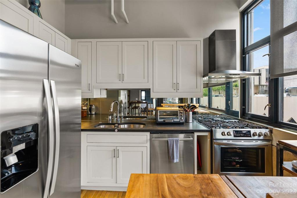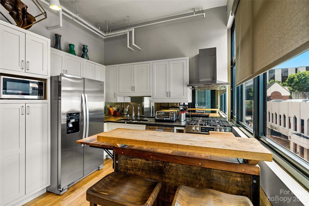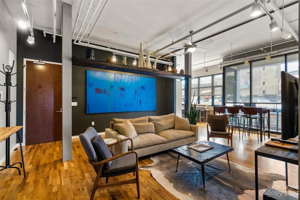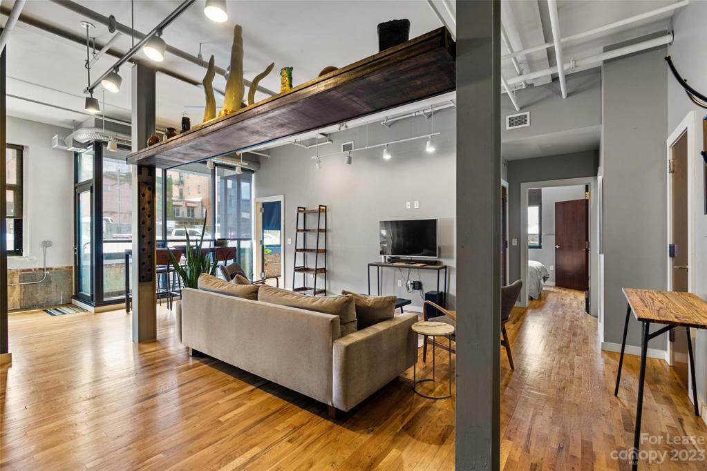 Modern, bright, secure industrial loft in the heart of downtown Asheville. This stylish 2/2 open floor plan features a large private terrace , exposed brick walls, high ceilings, oak floors, concrete countertops washer/dryer and ample closet space. Walk to all the downtown Asheville hot spots, spas, and merchants from your front door. Offered turn key- furnished( $4200 per month), Easy parking available directly across the street at the Rankin parking garage.