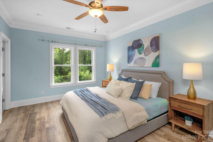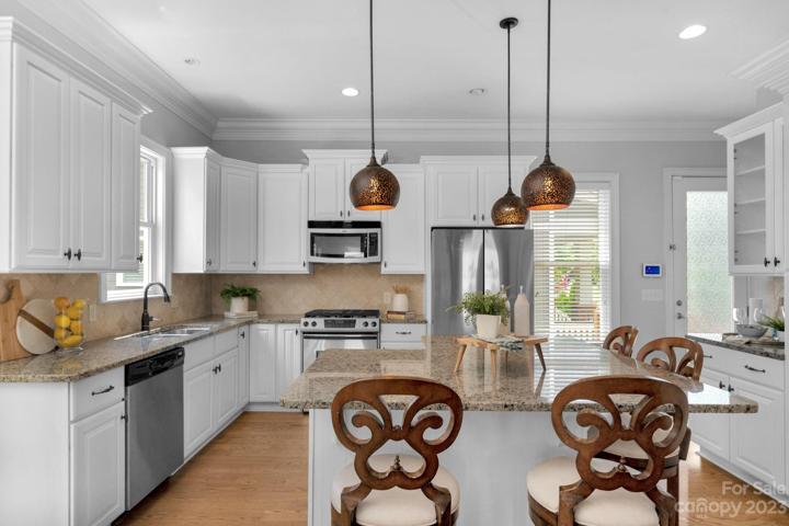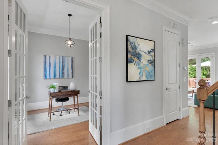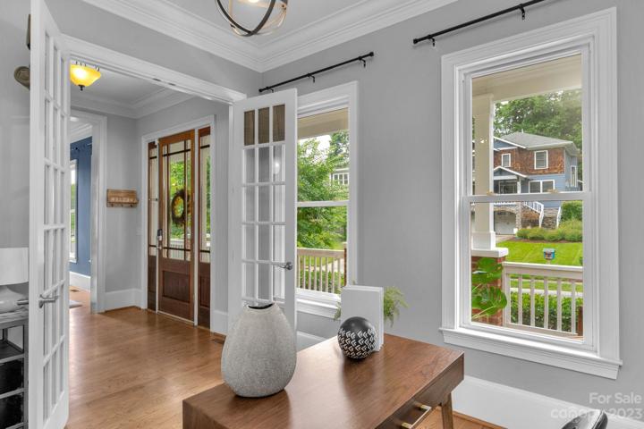Southern charm personified at this double rocking-chair porch home in the heart of Plaza Midwood. Light filled rooms, designer upgrades, high ceilings with crown molding and an open floor plan are just some of the exquisite details that make this home a stand out. The main level features an open spacious living area and a kitchen perfect for entertaining. A breakfast room, dining room, office and laundry with sink complete the main floor. Head upstairs using an elegant curved staircase to find hallway access to the upper level covered porch. A spacious primary suite includes an ensuite with dual vanities, a soaking tub, oversized tile surround shower with dual heads, and a walk-in closet with custom built-ins. Two additional bedrooms share a full hall bath. Entertain outdoors on your full width deck overlooking plenty of trees with Briar Creek lolling in the background offering plenty of privacy and natural views. Steps away from all of the amenities Plaza Midwood continues to offer.