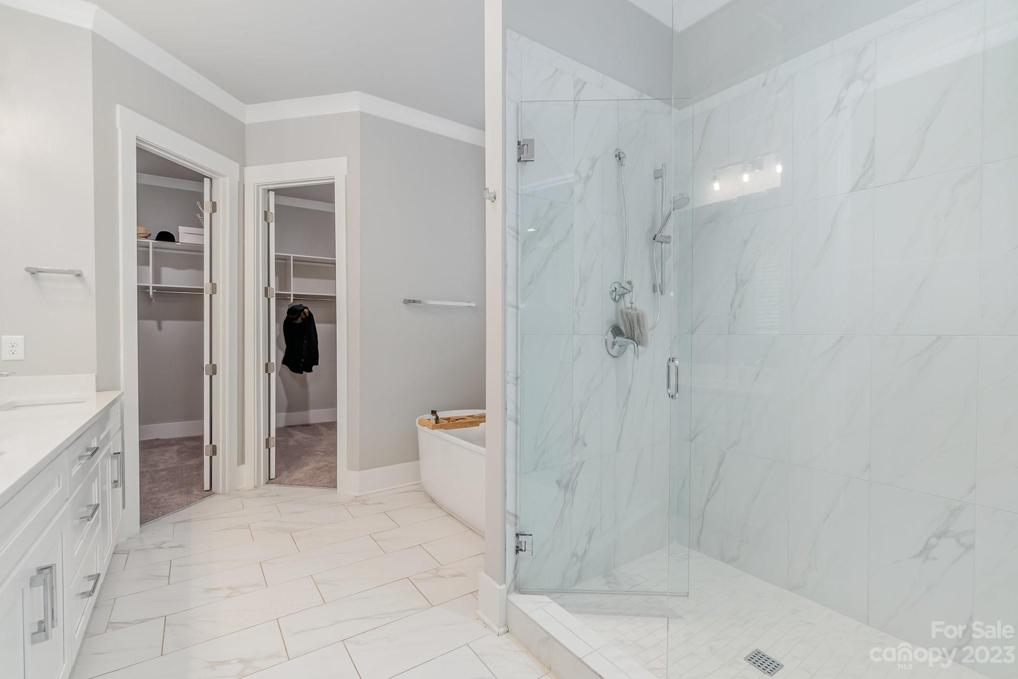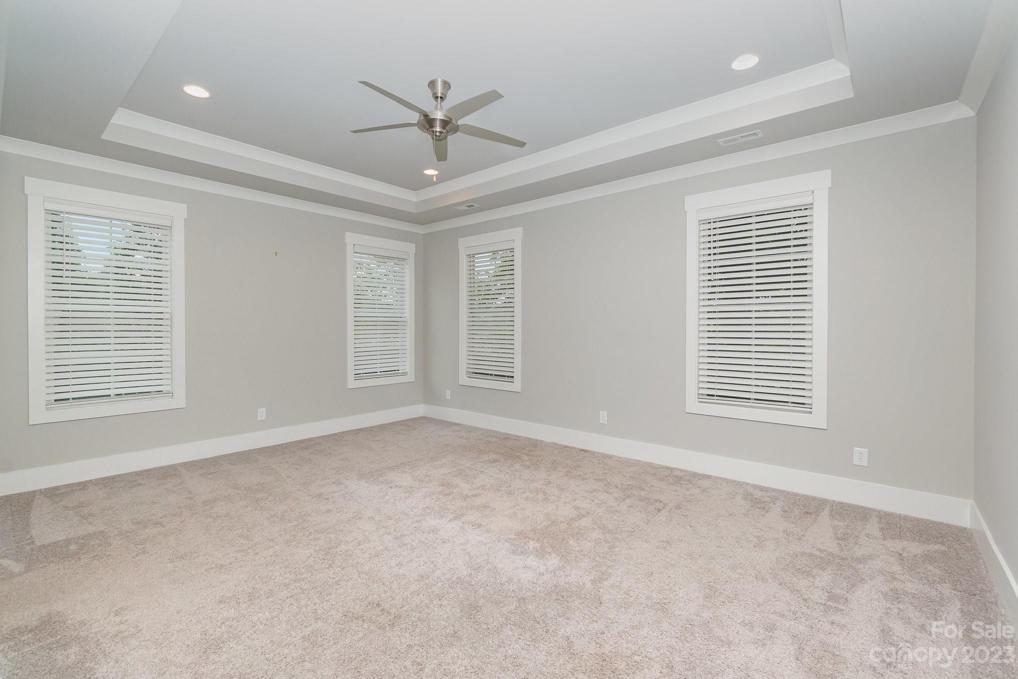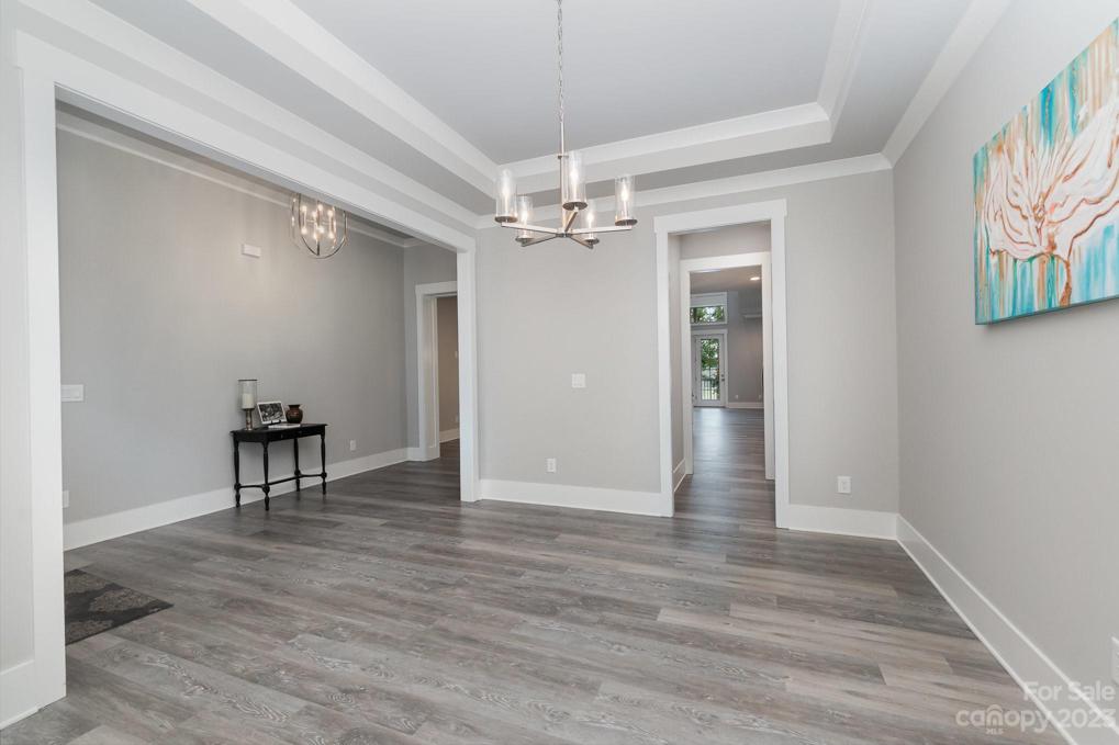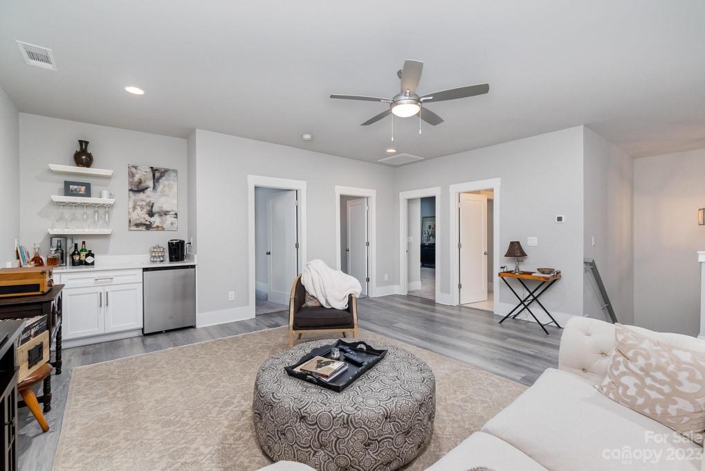 High End Small Townhome Community nestled near of restaurants, shopping, sought after schools & access to I-485.This newer 3 bed/2.5 bath home offers open floor plan,primary bedroom & spa like en-suite on main w/ tray ceiling,double closets, expansive shower & stand alone tub.Chef's kitchen features quartz countertops,42 inch soft close cabinets, stainless steel appliances, large island with tons of seating & adjacent butler's pantry with ample storage.Laundry room on main w/convenient laundry chute that also includes a built-in drop zone.Family room features vaulted ceiling with large windows for lots of natural light. Upper loft area with dry bar and mini fridge,2nd floor also features a large heated/cooled storage closet.Private back deck looks out to wooded area.Oversized 2 car garage & 2 other private parking spots for this unit only & two more communal parking spots for anyone. 6 total parking space options-unusual for townhome community.Exterior home & lawn maintenance included!