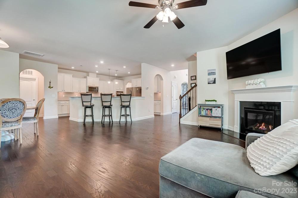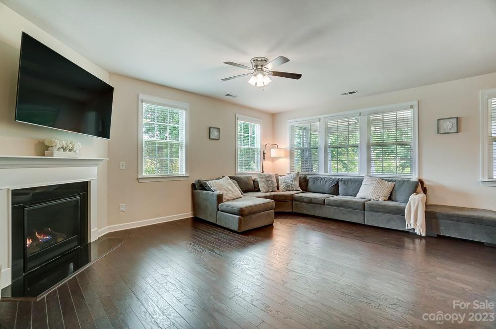 GORGEOUS, move-in ready home on OVER HALF AN ACRE lot w/wooded views! Located in desirable Lawson, zoned to Cuthbertson schools. Lovely landscaping to enjoy from your bench swing & covered front porch. Inside you'll find classic hardwood floors on main, formal office, dining room, breakfast area & open floor plan PERFECT for entertaining! Gourmet kitchen, butler's & walk-in pantry plus granite countertops, SS appliances & tons of natural light! Primary bedroom suite on main level, primary bath w/granite dual vanities, garden tub and separate, tiled shower. 3 additional bedrooms & 2 baths on upper level, along with a HUGE bonus room that could be used as a 5th bedroom. Neutral paint & professionally cleaned carpet throughout! Love a grand, outdoor space to enjoy? You'll be OVERJOYED with the OVERSIZED, screened-in porch, outdoor paver patio w/fire pit, bench, huge, flat backyard! Community clubhouse, pools, fitness centers, tennis courts, playgrounds & walking trails!