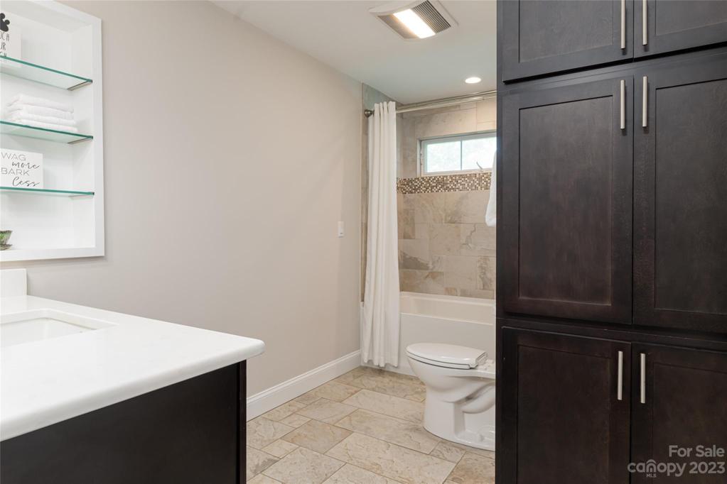 Stunning 2017 re-model all the way down to the studs. All new electrical, plumbing, HVAC, roof, exterior siding and more. Open floor plan with tons of natural light. Large, private primary suite with access to the back deck to enjoy the year round mountain views. Level green space perfect for gardening, pets and play. Unfinished full basement has a fireplace, bathroom, a single car garage and tons of storage providing endless possibilities. Third bedroom currently being used as a media room. Large bonus/loft space with a full bath ideal for a home office, exercise or recreation. Convenient location only 15 minutes to downtown Asheville and Weaverville. Don't miss this one!