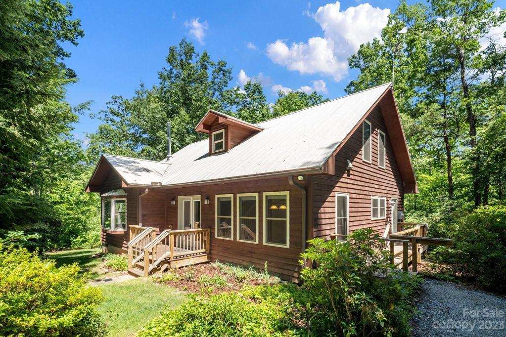 Experience the charm of this stunning custom cabin, boasting over 2000 square feet of interior living space along with expansive upper & lower decks. This home offers plenty of room to stretch out, relax & enjoy the beautiful scenery. Downstairs you'll find the spacious primary suite w/ custom walk in closets, en-suite & direct access to the large back deck. Also located down is large living room, spacious dining room & kitchen w/ central island. Upstairs boasts two large bedrooms, one w/ direct access to upper deck along w/ full bathroom & ample storage. No stone has been left unturned w/ high efficiency JØTUL F 100 NORDIC wood stove, high efficiency heat pump, passive solar windows, in-home speakers, quality construction including 6 inch exterior walls & so much more. All of this is set on a private 3.3 acre lot close to Lake Lure, Chimney Rock State Park & Tryon International Equestrian Center offering a perfect blend of seclusion & accessibility to all the area has to offer!