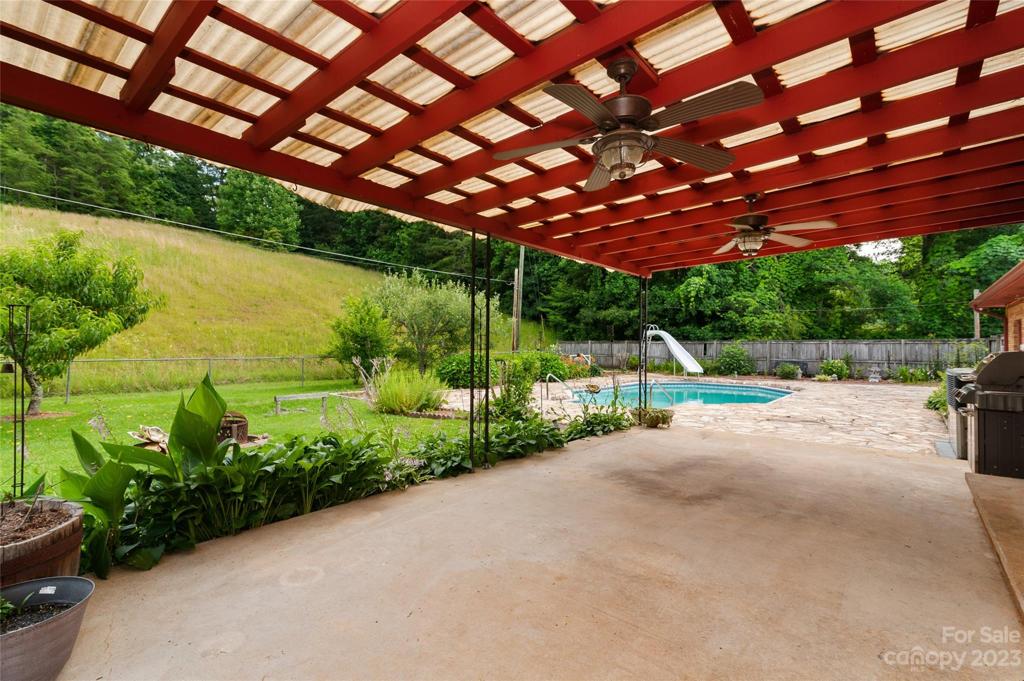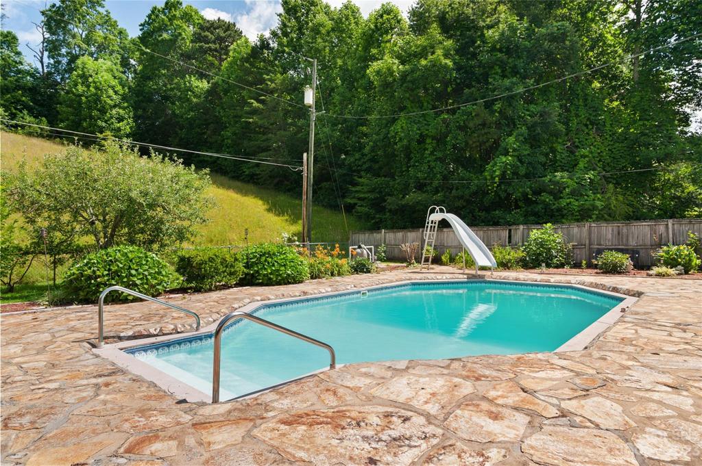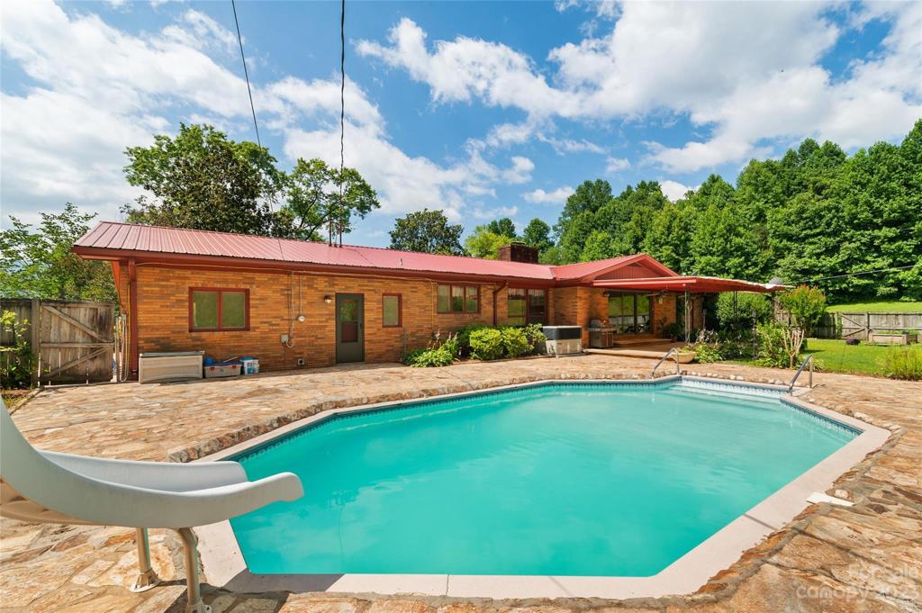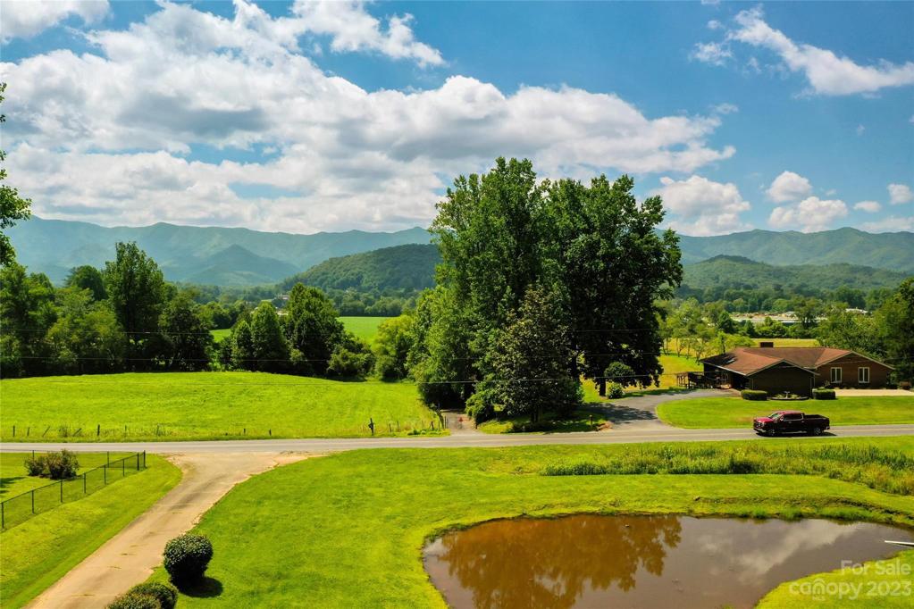 Welcome to this 4-bed, 2.5-bath ranch-style home in Andrews, NC; the ultimate in single level living. Situated on a 5+ acre lot, the in-ground pool in the backyard and the serene pond in the front yard define this property. The lush lawn, dotted with fruit trees and flowers, opens up to year round mountain views, giving you a slice of paradise. The great room offers a panoramic view through large picture windows, while the separate den overlooks the fully fenced backyard and pool, creating distinct spaces for relaxation and entertainment. With an attached two-car garage and multiple storage closets, the home provides ample room for vehicles and gear. Beautiful new hardwood flooring underfoot and a fresh coat of paint enhance the appeal. This welcoming home masterfully combines space and convenience, presenting an ideal setting for functional living and memorable gatherings. This home presents a harmonious blend of comfort and natural beauty, ready for you to make your own.
