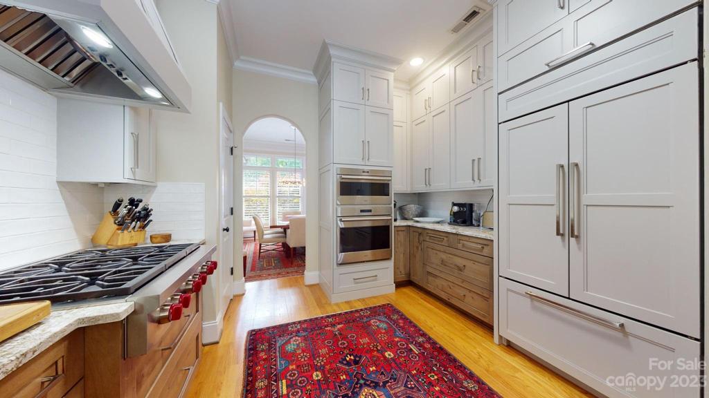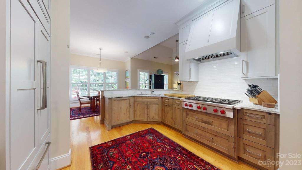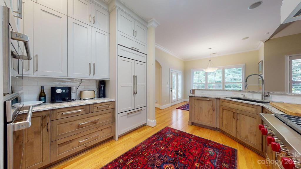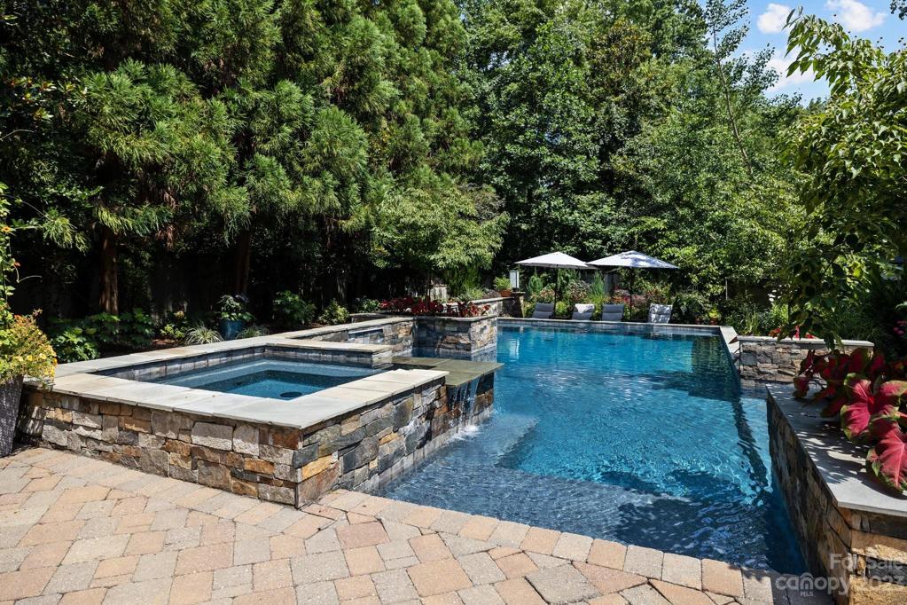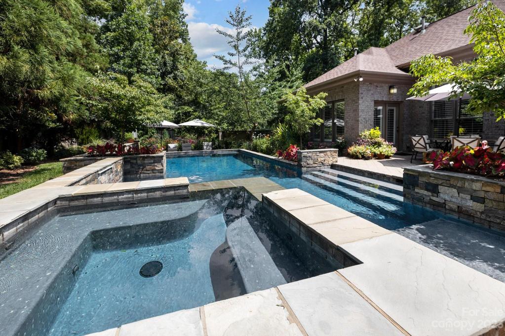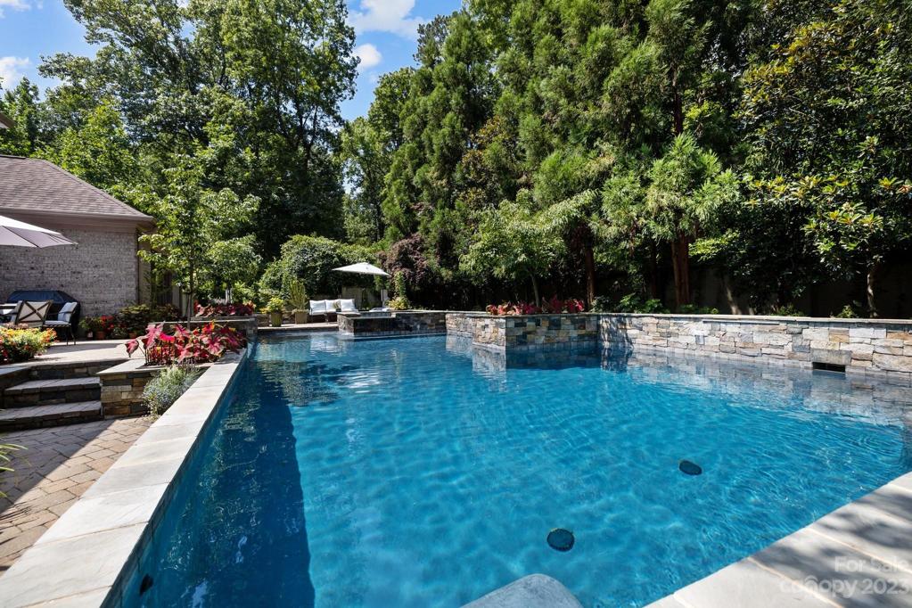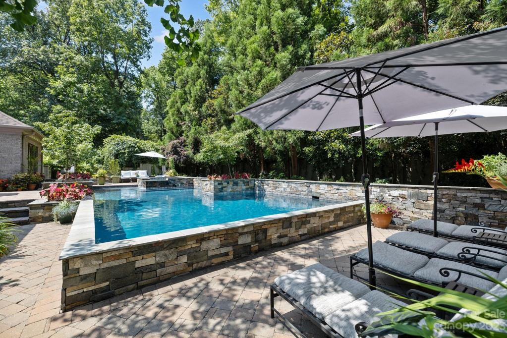 Spectacular custom home in Sherwood Forest. This four bedroom, three full bath stunner features over 1/2 acre of breathtaking grounds with a private fenced/walled back yard showcasing incredible pool, hot tub, and extensive hardscape and landscaping. This is a one of a kind home that gives you the best of both worlds; city living close to Southpark, Uptown, great schools, and shopping, as well as a private retreat to enjoy all year The original owners spared no expense renovating the kitchen to include custom dual cabinetry, Wolf appliances, custom paneling for the built-in refrigerator, and a chef friendly layout. Two full bedrooms, two full baths, living room, den, office, dining room, breakfast room, and laundry are all on the main level, with an additional two bedrooms, bonus room, full bath, and a huge indoor storage room at the basement level. Two car side load garage, irrigation system, and other thoughtful touches abound. One of a kind property!
