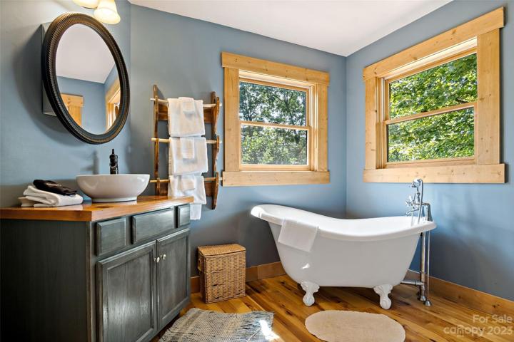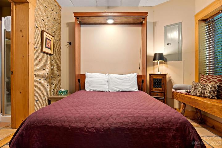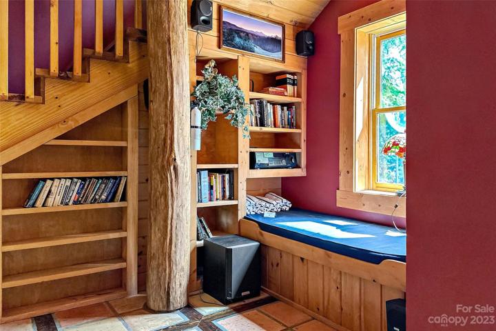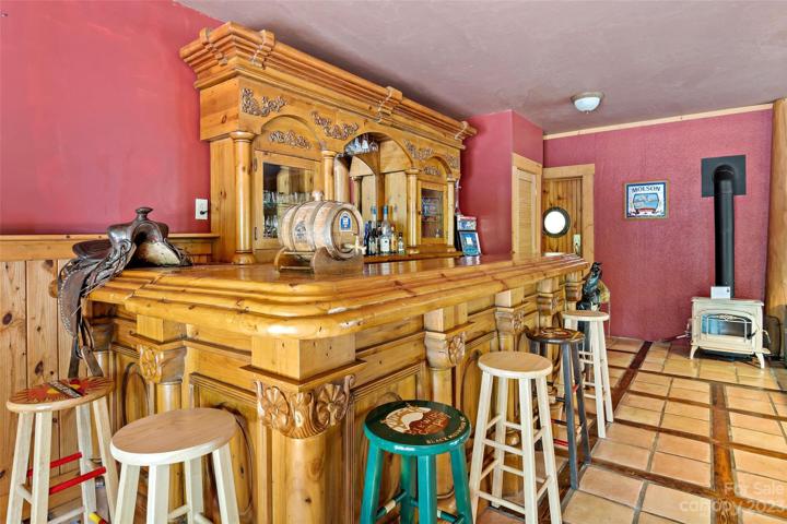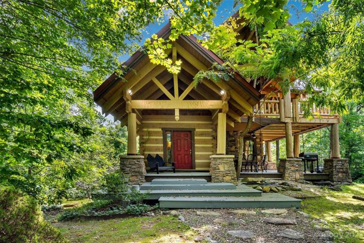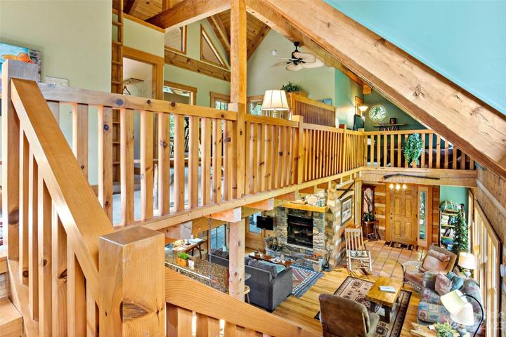 Perfect income producing log cabin! The hand-hewn logs and many windows bring the warmth of nature inside. The great room centers around the kitchen and wood-burning stone fireplace. The lower level features a spectacular antique pine bar with a pool table and dartboard. Double doors lead outside to the secluded hot tub and fire pit. The second stone patio has an outdoor pizza oven and fire pit with a nearby picnic table and horseshoes. Many fruit trees, berry bushes, grapevines, and an organic garden are available for the "pickins". The open loft upstairs is the primary bedroom suite. From the king bed, morning views of the mist in the distant mountains are spectacular. The room with two twins adjoins the primary suite and is also open to the living area below. The upper deck with two rocking chairs is an ideal spot for morning coffee. Home comes fully furnished and sits on 2 beautiful lots. 3rd lot with lake access purchased separately for $85k.