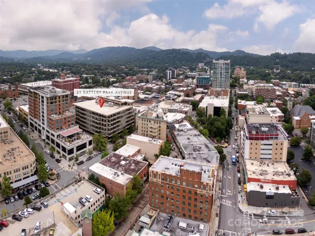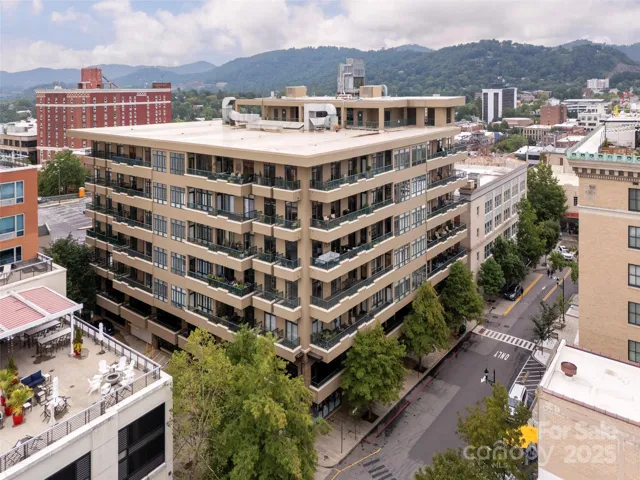 Enjoy living in the very heart of Downtown Asheville in this light filled, well designed condo with views of the mountains & historic buildings. This larger, corner condo is priced less per square foot than any downtown condo and offers ideal space for year round living. The rooms are large & open onto 3 covered balconies & a large covered patio. The decor is neutral and ready for your own palette of colors & changes to suit your own tastes. This unit is entered from a nicely furnished, multi-storied atrium. In addition to good storage in the unit, there is a separate large, lockable storage room (heated & cooled). Owners have access to the rooftop with outside & inside entertaining areas, an exercise room & stunning views. There are two secure parking spaces. This premiere location allows you to walk to many excellent restaurants, interesting shops and entertainment venues. Experience urban living at its finest & see why Asheville is on so many of the lists of best places to live.