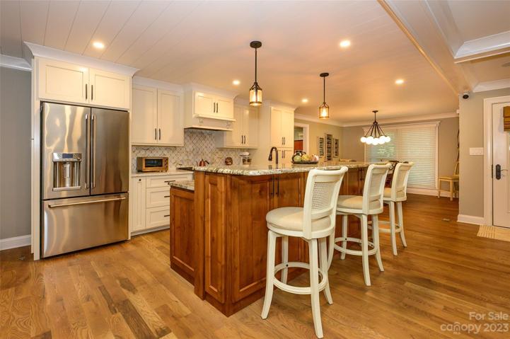 Step inside this remarkable residence, a true testament to craftsmanship & attention to detail. This is the builder's personal home, where every detail has been carefully designed & meticulously executed. Features include beautiful front porch,gorgeous hardwoods (Rubio Monicoat), intricate millwork, nickel gap ceilings, custom cabinetry, premium Benjamin Moore paint & upgraded electrical/plumbing fixtures. The Chef's Kitchen includes a copper sink,stainless appliances & center island. The luxurious primary suite includes a spa-like ensuite bathroom. Additional updates:HVAC (2019),Roof (shingle portion in 2018/metal portion 2020),replacement windows, updated plumbing & electrical. The screened porch overlooking the fenced yard/patio area with outdoor kitchen & lush landscaping is perfect for entertaining. The 2 car garage/detached workshops and 2 acre lot provides lots of storage & parking spaces. Located in the desirable Houston Farms (no HOA) and top-rated Weddington school district.