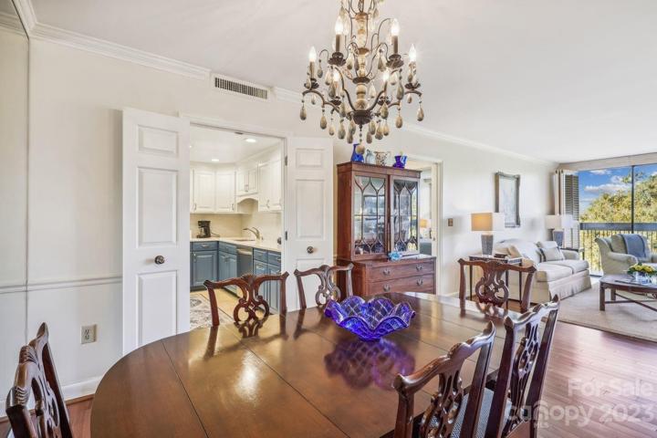 Don't miss this amazing opportunity to live in the heart of Myers Park for under $500K! Relax and enjoy the views of the Charlotte skyline from your seventh floor balcony! This unit features a split bedroom plan and spacious living/dining area with lots of natural light and beautiful views provided by the wall of windows The kitchen has been updated with stainless appliances, quartz counter tops, and subway tile back splash. Hardwood flooring was added throughout the home with tile flooring in both bathrooms. Storage is not an issue as the extra large laundry room has tons of built in shelving. There is also an extra storage space in the lower level garage with secure parking. The beautiful lobby and community room/kitchen have been recently updated and provide a lovely spot to gather with friend and neighbors. All of this within minutes of Uptown, restaurants, and boutique shopping! Welcome home!