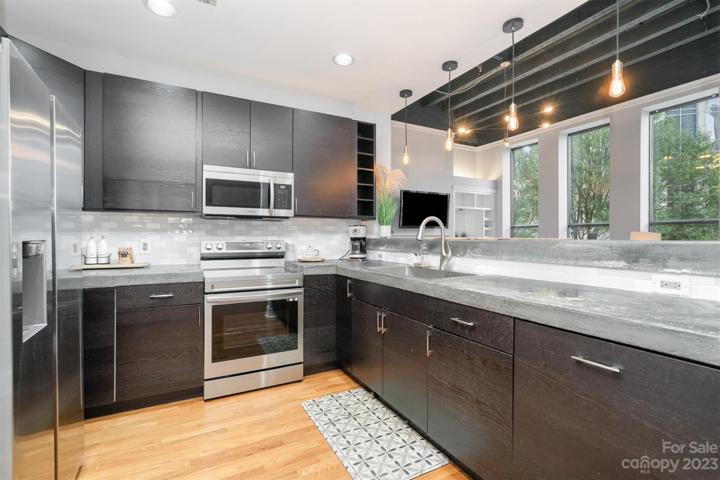 Indulge in luxury living in the heart of bustling Uptown on the third level of The Historic Ivey’s Residences. This condo boasts stunning hardwood floors and an incredible view of N. Tryon and E. Fifth Streets, giving you a front-row seat to all the action. With an updated, modern living space- experience an inviting concierge lobby and private entryway, leading to your new warm, open-layout home PACKED with updates. Tall windows and modern light fixtures outline an exposed, industrial heightened ceiling. Designated dining area, elevated counter bar-top, updated chef’s kitchen with stainless appliances, and built-in cabinetry ready for use. Don’t forget the two newly updated baths and new HVAC! Not to mention, access to top-of-the-line amenities of The Ivey’s Hotel, including a full gym on the second floor and the exclusive Sophia's Lounge. Global cuisine next door at the new Monarch Market food hall. Don't miss this chance to experience the epitome of high-end living! Come and see!!