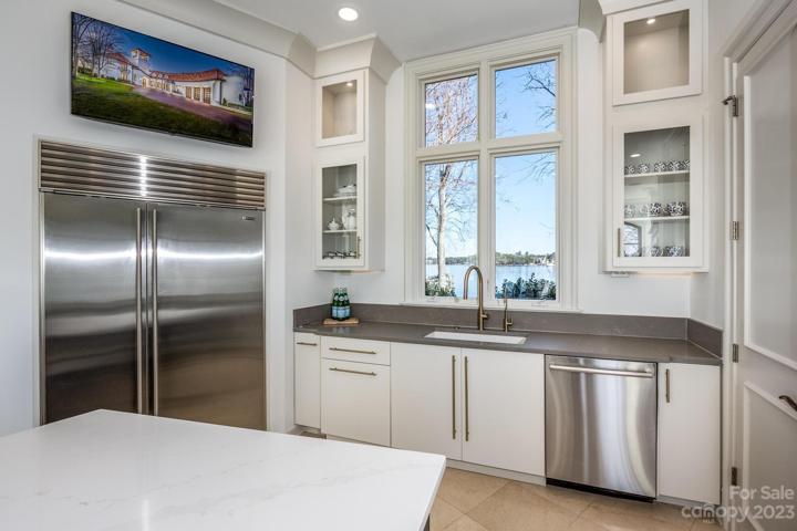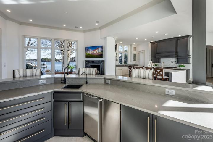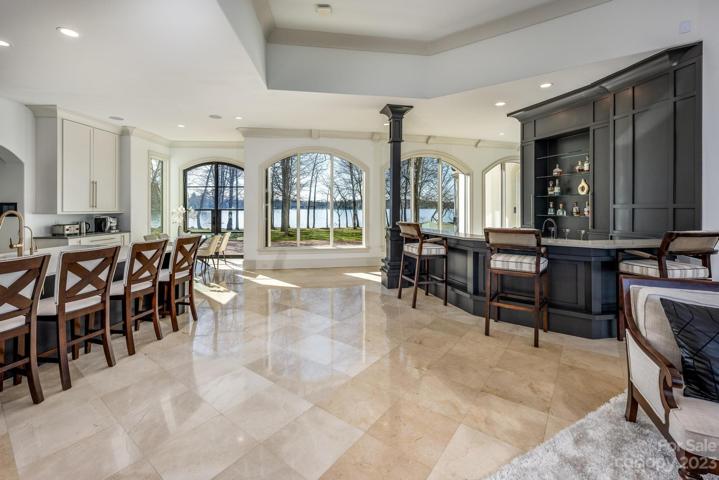 PRICE REDUCED! Gracious elegance abounds in this enchanting waterfront estates with over 900' of shoreline on a private gated peninsula. This unique estate has mesmerizing HUGE lake views where heaven & earth merge, providing a serene ambiance that makes this a rare & tranquil retreat on Lake Norman. Soaring ceilings & walls of windows drench this home with light & energy. Chefs will love the large center island, Wolf oven, gas cooktop & Subzero refrigerator, warming drawer & quarts counters. The 1st floor Primary suite features fabulous lake views, luxury bath & separate closets. Take the elevator up to the 2nd floor where there are 4 en-suite bedrooms, theater room, billiard room & flex room. End your day on the 3rd floor rooftop covered patio with unbelievable panoramic sunset views. Extras include 4 gas vented fireplaces, a wet bar adjacent to the keeping room, wine closet, inground pool & spa, private pier, dock, boat lift with an electric Swiftshield boat cover & 2 jet ski lifts.