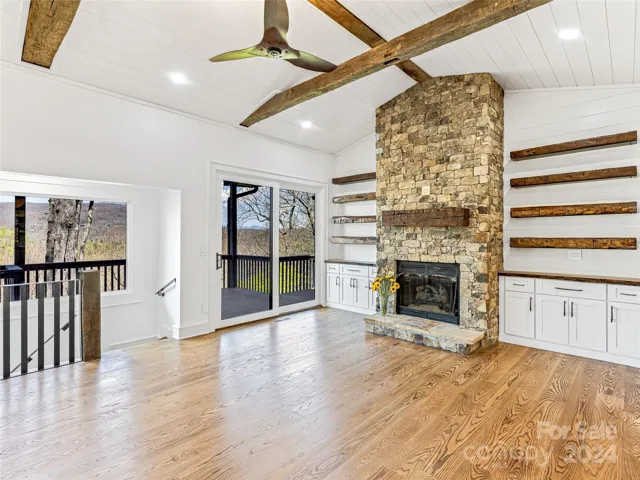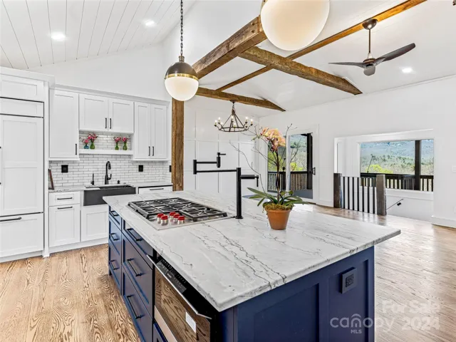 Your sanctuary awaits in Lake Toxaway Estates, commanding 3+ acres of breathtaking mountain views. This newly renovated home offers two primary suites and an office space on the first level, and a full bedroom, bath, and bunk room on the lower level, perfect for accommodating guests. Entertain in the lower level living space, with a wet bar and Zephyr wine cooler. The upper deck with a gas connection for your grill sits above the sweeping moss lawn. The kitchen features a Sub Zero refrigerator, Wolf cooktop, Cove dishwasher, and double Bosch ovens. Custom cabinetry and an island with a deck-mounted pot filler complete the kitchen. Enjoy heated floors in each bathroom, a luxurious master bath with a new soaker tub and an Elkay Quartz sink. This home boasts new windows and doors, a new roof, wood floors throughout, a new stone fireplace, and designer lighting fixtures. Located on a cul-de-sac only minutes from club and lake amenities, this home promises privacy and mountain luxury.