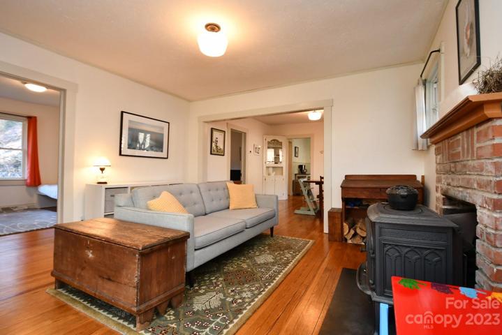 Mini Mountain Farm Oasis! Perfectly placed in the bend of Duck Branch on 4.6 acres! Gently rolling flat land climbs up the ridge with multiple paths to the top. Beautiful 1940 two bed one bath main house has been recently upgraded throughout. Restored hardwood floors, spacious living room with bonus sitting nook flows into the dining room, large primary bedroom, full bath, bright kitchen with gas stove & laundry in sunroom. Huge workshop / garage has a large two bedroom apartment above. Old tobacco barn + large wood/ horse barn. Amazing fields on each side of the house are perfect for gardening. Private back yard is all set up for outdoor living with a large deck, that includes an outdoor shower, the old root cellar has the most fabulous outdoor tub on the 2nd level, heated with small potbelly wood stove. Enjoy the beautiful summer nights in the mountains, around the campfire, listing to the creek flow by all while watching the stars twinkle overhead! Showings available starting Monday