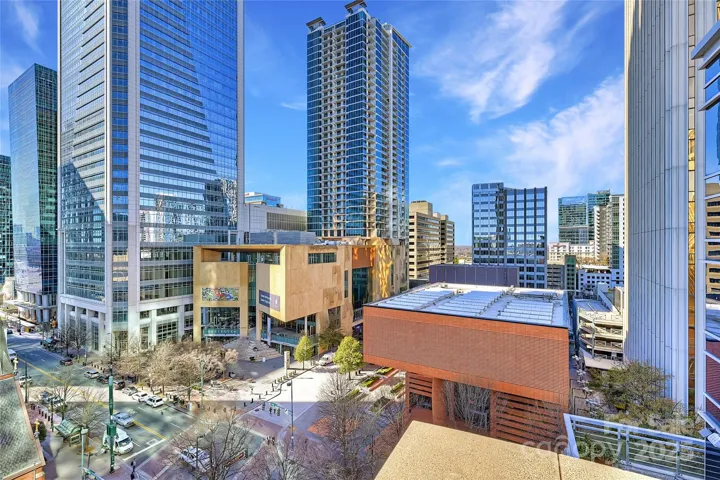 Ratcliffe Icon. A stunning glass-wrapped one-level, condo floats above the pulse of Uptown's cultural/central business district, offering one of the most dramatic vantage points in the city. A rare combination of clean-lined spaces that are both sophisticated and relaxed. Hand-selected European, tea-stained white oak floors were recently installed. Pour your favorite drink and spill out to one of two terraces showcasing iconic south-facing views over the perfectly manicured grounds of “The Green” and S. Tryon's streetscape. The kitchen offers well-planned work areas and ample storage. Equipped for serious cooking with Sub-Zero refrigerator, gas cooktop, Wolf wall oven, wine chiller. Oversized primary suite has direct access to terrace 1, spa bath w/ floating dual vanity and steam shower. Gracious secondary bedrooms w/ good closets. There’s more, designer lighting, modern paint, 2 premium parking spaces and storage unit. Unmatched location. Iconic lifestyle. Schedule your tour today!