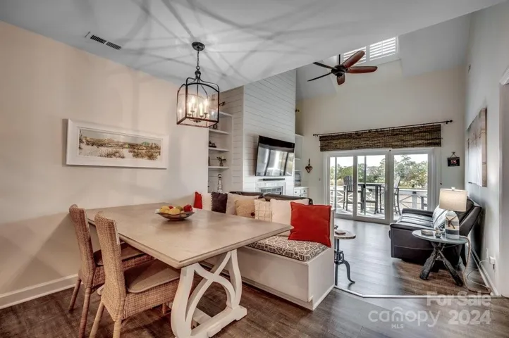 Beautifully renovated condo, with gorgeous ICW views directly from your back porch as well as calming marina views from the front porch & kitchen! This condo is immaculate, and has two bedrooms and two and a half bathrooms. Luxury vinyl plank flooring throughout the condo. An open-concept kitchen with quartz countertops. Primary Bathroom features a glass all-tile walk in shower! The dining area has a custom made banquette built to optimize the space. The living room features a cathedral ceiling, white shiplap feature wall, built-in shelving, & a beautiful view of the waterway. Relax on your back porch as you enjoy the sunset overlooking the marsh and waterway. The back porch has a screened-in section that attaches to the Primary bedroom as well as an uncovered section with an automated retractable shade. Take your boat out on the waterway from the Marina within this community. The community itself features a marina with boat slips, onsite bar at the clubhouse and maintenance staff.
