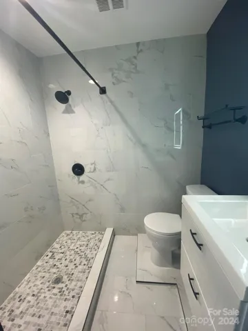 Recently renovated 2 bedroom, 2.5 bath condo in the highly desirable Quail Hollow Estates community. Galley kitchen includes new shaker white cabinets and quartz countertops and stunning blue ceramic tile backsplash for a nice pop of color. White tile showers in both full bathrooms. Ceramic tile floors with a wood look to them in the living room that is equipped with a granite topped wetbar and has a sliding glass door to the sunroom. Primary bedroom includes en-suite bathroom behind a barn door. Home has a Ring Doorbell. Community amenities include two swimming pools with stone paver pool decks, Clubhouse with a large dining patio all overlooking scenic pond views of the community's three ponds, tennis courts and there are walking trails throughout the community and across the street from the Little Sugar Creek Greenway. Convenient to Quail Hollow Golf, and ten minutes to SouthPark. Agent is part of the ownership group.