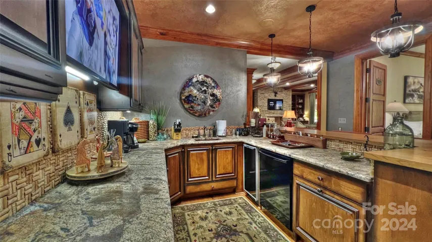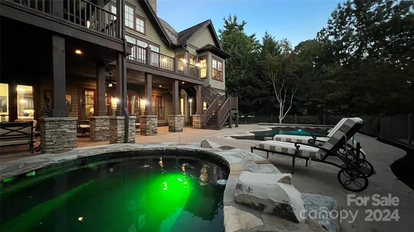 Arts & Crafts masterpiece, GrandView Lodge blends timeless beauty and modern luxury. Located in the Reserve section of Bright’s Creek. This custom-built home is awash in natural light and mountain views. It comes with 5 bedrooms, 5 ensuite baths and 2 half baths at approx 5,660 sq ft. This open floor plan boasts hickory trim, knotty alder interior doors, stone fireplaces, custom wall and ceiling finishes, Smart TVs with surround sound, elevator, and 5 ensuite bedrooms. The master suite with towering ceiling and a ensuite spa-like bathroom, gourmet kitchen with river rock granite and top-of-the-line appliances (Wolf, Sub-Zero), exquisite dining room, large laundry room, porch has wood-burning fireplace. Outdoor entertaining space with kitchen. Guest suite above the garage. The bottom floor hosts a den, game room with a built-in wine fridge and sports bar. Unique POOL with a separate spacious hot tub. See documents for ALL the details and house plans.