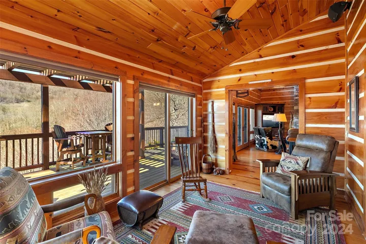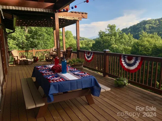 The perfect retreat, full-time residence, or investment property w/ long-range Blue Ridge & Grandfather Mountain views, resting on 6.8+ acres of wooded privacy. This FURNISHED 3BR 3.5BA lodge offers all main amenities on the walk-in level, w/ open-concept floorplan & ample outdoor living space. Short-term rentals allowed= vacation rental potential! A spacious great room w/ vaulted ceilings & stone fireplace opens to dining area & kitchen w/ high-end appliances & granite counters. Enjoy the views from the large wrap-around deck & stone patio w/ firepit. Main level features 2 suites; the primary suite shares access to sunroom/study area & features walk-in closet, large shower, & separate soaking tub. On the second level over the main part of the home, find a loft/sitting area, bedroom, bonus room or office, & full bath. A separately accessed 2nd level provides a 2nd large living room/game room w/ stone fireplace, full wet bar w/ beverage/wine cooler, & half bath. Furnished w/ Exceptions.