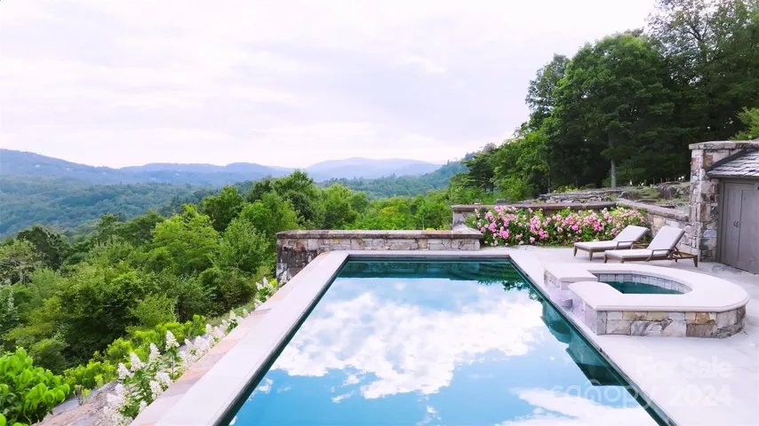Awe-inspiring and perched majestically at 4000 feet above exclusive Highlands, NC, recently named America's Best Mountain Town by Travel and Leisure, Sagee Manor emerges for consideration from a decade-long eight figure enhancement to its grounds, manor home, and guest lodge. Centered among 40+ acres of pristine gated mountaintop enclave, Sagee's panoramic vistas take in long range views of three states, yet position her just 7 minutes from dynamic Highlands and its thriving arts and cultural scene. For outdoor enthusiasts, the region boasts world class golf, hiking, and 2000+ miles of trophy fly fishing streams. Recently enhanced and expanded, the Manor's primary residence offers unrivaled appointments, a grand two-story great hall, imported design selections and millwork, an exquisite owners sitting room and salon served by a private elevator, classic dining, kitchen, and Library areas complimented by covered outdoor pavilions, a helipad, infinity pool, English gardens & guest lodge.