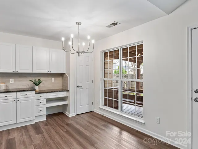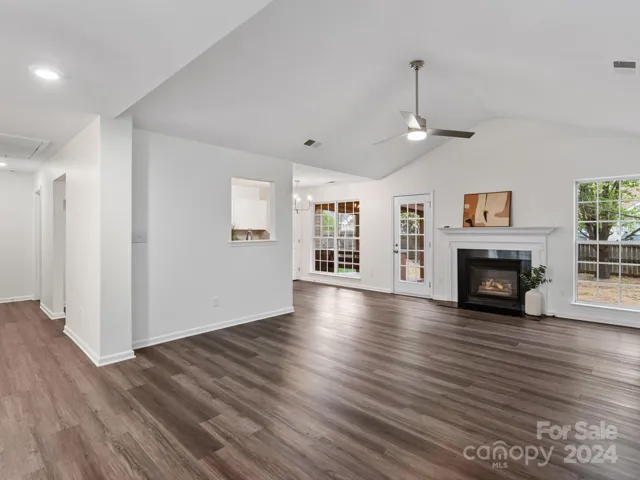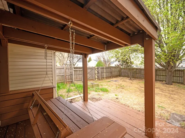 This is the one! One level living situated on a large corner lot with a private fenced rear yard. Fresh paint, new luxury vinyl plank floors and carpet. Granite counters in the kitchen are complimented by brand new stainless appliances featuring a gas range. Split bedroom floor plan keeps the Primary bedroom on opposite side of the home, a bit of peace and quiet space for the respite when needed. Primary ensuite features a full 5-piece bath and large walk-in closet, More particularly bright natural light, double sink vanity, soaking tub, separate shower. The 2 guest rooms have ample closet space and share an updated hall bathroom. Enjoy the evenings or your morning cup of coffee in the swing overlooking your private yard. The community offers a pool, tennis courts and a game court. You will be minutes from I-85 and I-485, restaurants and shopping. Don't miss the chance to call this one yours today!