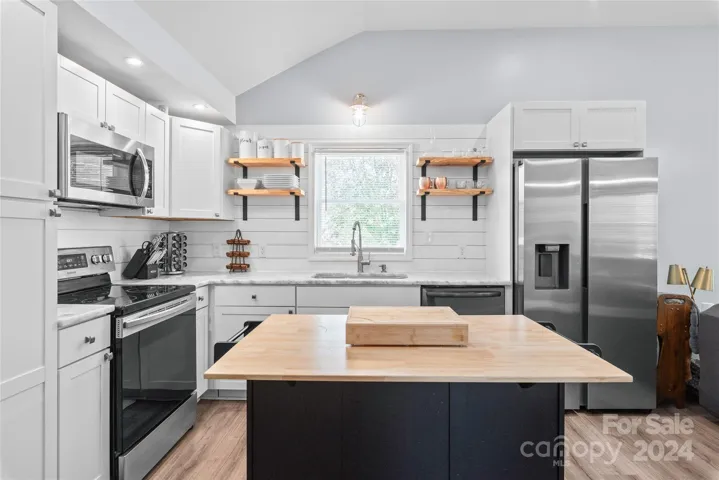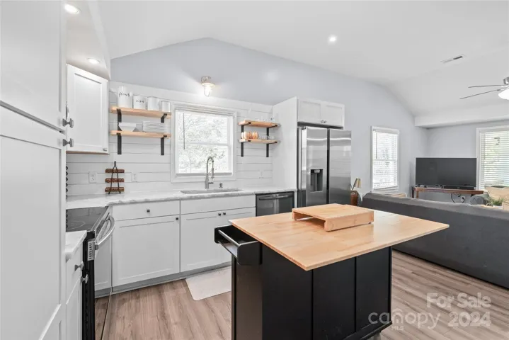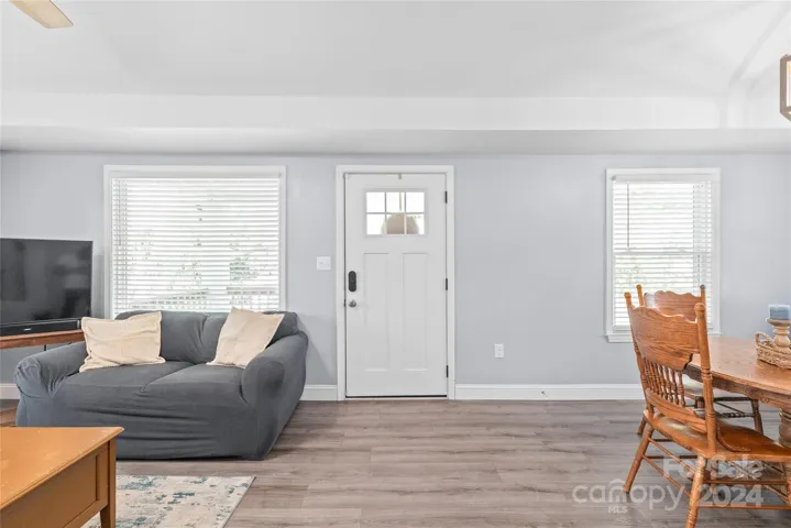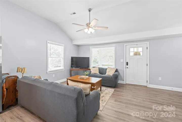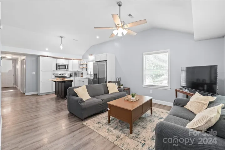 CURB APPEAL ALERT! Do not miss this ONE-OF-A-KIND CHARMER! Fantastic rocking chair front porch and landscaping with stone walkway welcomes you home. The yellow front door feels like a ray of sunshine! Open floor plan, bright and airy kitchen with stainless steel appliances, tile backsplash, kitchen island, floating shelves and lovely marble counters. Inviting dining area open to the great room. Laminate wood floors are both beautiful and durable and the vaulted ceilings make the home feel so spacious. Ample bedrooms and 2 baths; one with shower only and one with tub and shower combination. Large fenced backyard with patio that is great for entertaining/relaxing and there is a shed for storage. Easy drive to I-85 and just 8.5 miles to airport. Do not miss this opportunity to own this Mount Holly home!