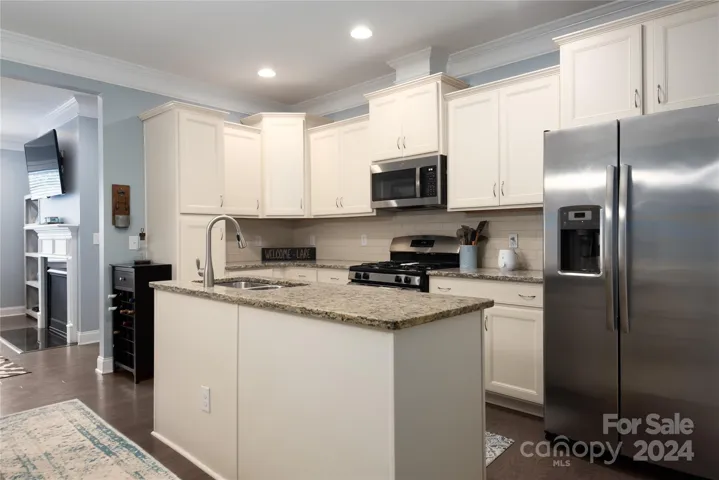 Beautiful townhome in The Vineyards at Lake Wylie. This home has it all! 3 large bedrooms, spacious walk-in closets, 2.5 baths & huge bonus room. Primary bdrm on main features dual vanity, garden tub & shower. Main level has 9 ft ceilings, crown molding, gas fireplace & laundry room. Upstairs has large 2nd primary bdrm, 3rd bdrm w/ covered balcony & bonus room . Upgraded pantry has cabinet w/ shelving & pull out drawers. Relax on the gated back patio or enjoy lake front amenities just across the street (community lakeside fire pit, kayak dock/storage & lakeside trails). 2 car garage includes shelving for extra storage.