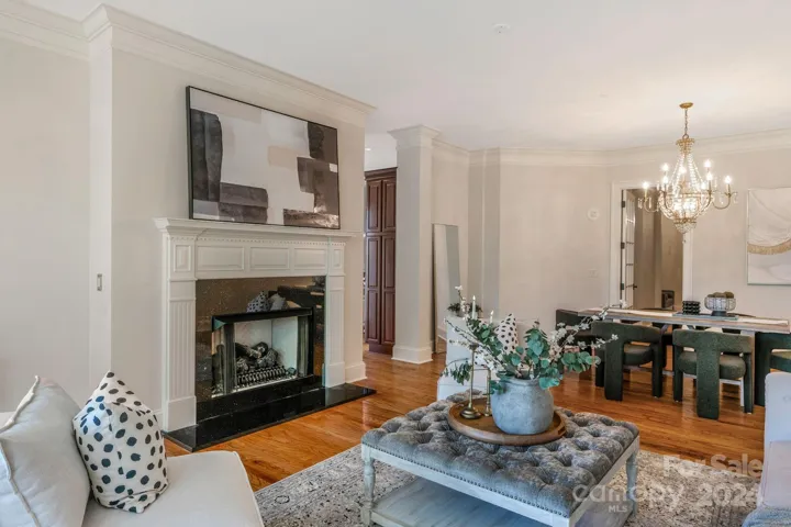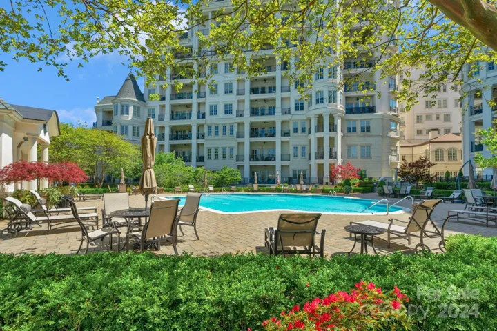 Welcome home to this luxurious resort-style condo inside Rosewood on Providence. Exquisite finishes throughout including architectural details, high-end cabinetry and elegant fixtures. A spacious open concept living and dining room area leads to a gourmet kitchen with granite counters, tiled backsplash, stainless appliances and a convenient island with seating. The primary suite includes double French door access to a Juliette balcony. A secondary bedroom has direct access to its own full bath. A flex space is perfect for a reading enthusiast's library, hobby or home office. Enjoy a covered balcony overlooking the natural beauty of a mature tree scape. Unmatched amenities include concierge service, 24-hour security, a fitness center, multiple gathering areas, card room, pool and tennis/pickle ball courts. Short walk to area restaurants, Cotswold Shopping Center, with a quick drive to SouthPark and Uptown Charlotte. This is truly a unique residence with unparalleled amenities.