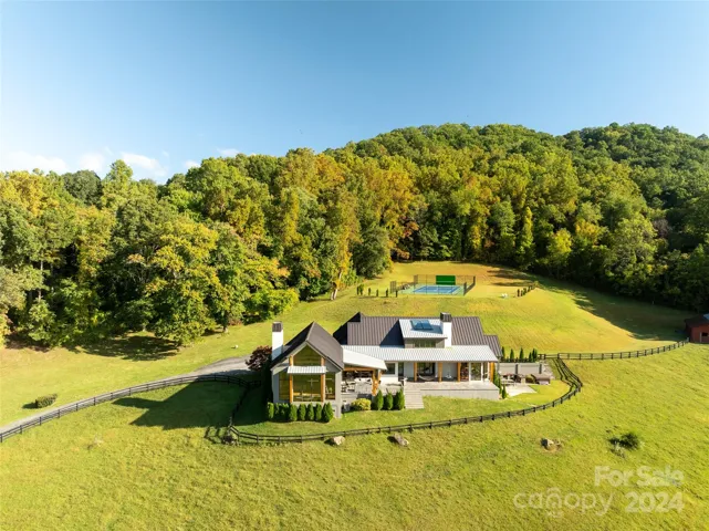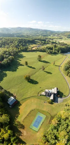 Discover a harmonious blend of luxury and tranquility in Fairview, NC, with this captivating 75+/- acre retreat. Commanding attention is a breathtaking single-family residence boasting four bedrooms and a gourmet kitchen, perfectly poised to overlook 25 acres of idyllic pastureland. Indulge in panoramic vistas from the tennis court or find serenity by the spring-fed pond. Complementing this haven is an income-generating 2-bedroom guest cottage, along with essential features like a barn, utility building, and meandering trails, enhancing the property's allure. Just a short 20-minute scenic drive from downtown Asheville, this modern mountain oasis awaits, ensuring every moment is cherished in this impeccably maintained sanctuary.