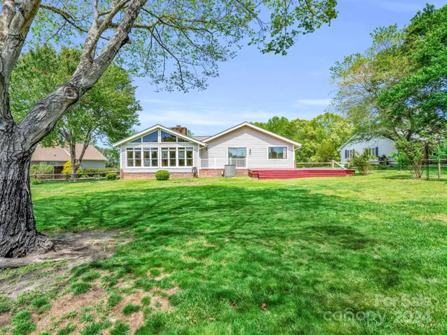 ***BRAND NEW ROOF was INSTALLED on 11/18/24. Equal to another large price reduction. Spacious move in ready home in the desirable Woodbridge community. Beautiful open views of the golf course at the 4th hole from the sunroom, bedrooms and back deck. Fenced backyard with peach tree, grapes, raised garden bed perfect for your vegetable garden. Very quiet and peaceful setting. Multiple light filled rooms with vaulted ceilings. Wood burning fireplace with electric insert can be converted back to wood. Upgraded washer/dryer new in June 2023, new deck in 2023, septic pumped and inspected on 08/29/23, HVAC: new fan motor on heat pump and all ducts cleaned 06/07/24. Public boat launch, fishing and camping on beautiful Moss Lake nearby.