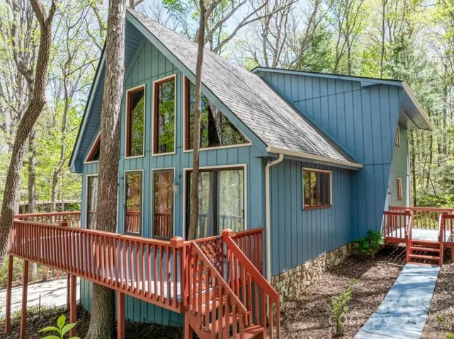 One owner whom lovingly built this home in 1980. This contemporary style home offers rustic interior charm with wood ceiling beams and a getaway vacation vibe! Check out https://www.exploreblackmountain.com/ to discover all there is to do in the area. The property features a wonderful family room with loads of natural light. Several exterior doors lead out to your decks to enjoy morning coffee or evening cocktails. The grounds provide a canopy of trees surrounding the property. Upper level includes 2 bedrooms with a shared access full bathroom. A small foyer office space or reading nook on upper level with balcony access. Main level includes open concept kitchen, dining, sitting and bath area and living room. Basement contain a small den with woodstove, storage and garage. Seller has recently put on a new roof and the warranty is provided in the attachments. Min. to the Town of Black Mountain & very convenient to Asheville or Old Fort.