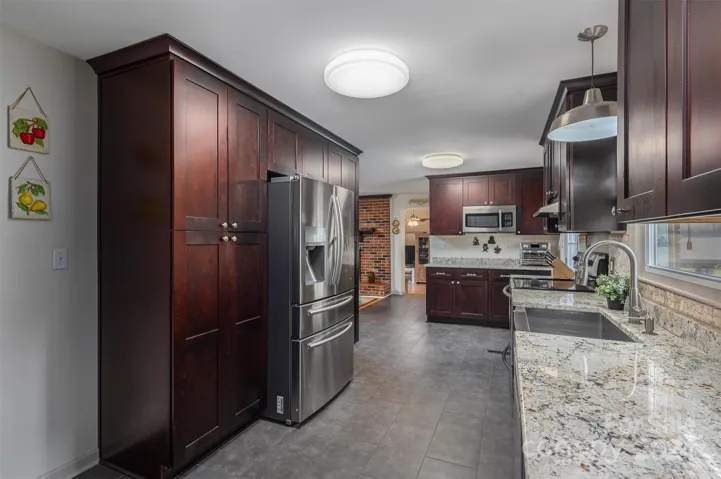 Gorgeous brick home located in North Lincoln School District! Upon entering the home, you will find a beautiful entryway leading to an executive office space. Stunning remodeled kitchen boasts granite countertops, stainless steel appliances, custom cabinetry with soft close drawers and farmhouse sink. Elegant dining area with decorative brick fireplace. The living room has vaulted ceilings and a beautiful bay window. Spacious primary bedroom has upgraded laminate flooring with his/hers walk-in closets. Primary bathroom features porcelain tile floors with a custom-built shower. Secondary bedroom on main has a full ensuite bathroom. Basement is heated and partially finished! Large back patio perfect for sitting under the light up pergola. There is a 2-car attached garage on the main level, 1 car garage on lower-level totaling 1032sf! Backyard has a 10x20 storage shed. Septic pumped/inspected 6-4-2024, HVAC main 2023, HVAC addition 2020, Roof 2016, thermostat has 2 zones. Must see!!