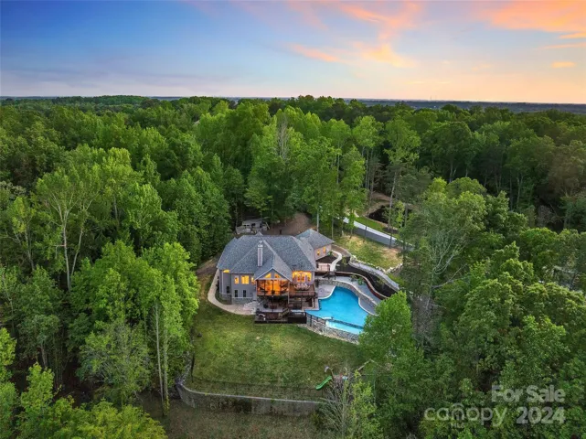 Seeing is believing! Custom rustic home w/ European flare situated on 6.72 acres in well sought out Kannapolis area. This private, wooded oasis has it all! Resort size pool w/ swim up bar stools & waterfall, pond stocked w/ catfish, bass, & brim, covered upper porch, covered lower patio, koi pond, playground, 3 separate areas for outdoor animals, walking trail -Chef's kitchen equipped w/ Thermador appliances that includes 48" range, built in fridge & freezer, built-in wall oven & microwave, dishwasher, wine fridge, oversized island, stunning cabinetry, x-large walk-in pantry, under cabinet lighting -Central vac throughout home -Vaulted ceilings, hardwood floors, crown molding, solid wood doors, 4 stone fireplaces, 2 indoor, 2 outdoor -Master bedroom w/ amazing view, incredible master bath w/ walk-through shower & spa tub. Each secondary bedroom w/ own bathroom. Partially finished basement that's plumbed, studded & more! Endless possibilities w/ the additional sq footage! A rare find!