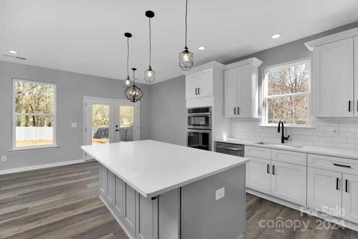 Stunning custom home with NO HOA!! Perfect location only 7 minutes to downtown Charlotte! 10 minutes to Matthews. The flooring is the best quality in the industry! 5mm thick Vinyl - Water and Scratch Resistant (Brand: Floors2000). Quartz countertops in laundry room, all bathrooms and kitchen! From the entry way space the home flows into a luminous, open- concept living, dining, and kitchen area. The kitchen boosts beautiful white quartz countertops, stainless steel 16 gauge kitchen sink with a big island. Enjoy winter evenings in front of the beautiful marble fireplace. The primary bedroom sits just off the living area complete with tray ceiling and a large walk-in closet. Entrance to green-way within walking distance. Enjoy walking the trails or riding your bike during the warm months. Home sits on corner lot with private fenced in backyard perfect for kids, pets or entertaining.