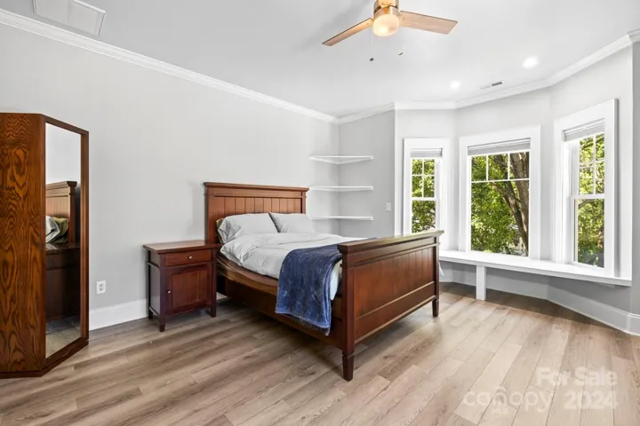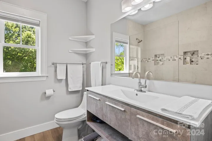 Located just three blocks from all the shopping and attractions NoDa has to offer on a quiet street. This custom built home features high ceilings, custom kitchen, and three spacious bedrooms each with their own bathroom. The oversized primary bedroom features vaulted ceilings, walk-in closet, and built-in storage. Large flat lot and open backyard with large deck ideal for hosting/entertaining guests. Massive detached two-car with plenty of room for storage or a workshop. Vapor barrier in the crawl space was installed a few years ago and the duct work under the home was recently replaced.
