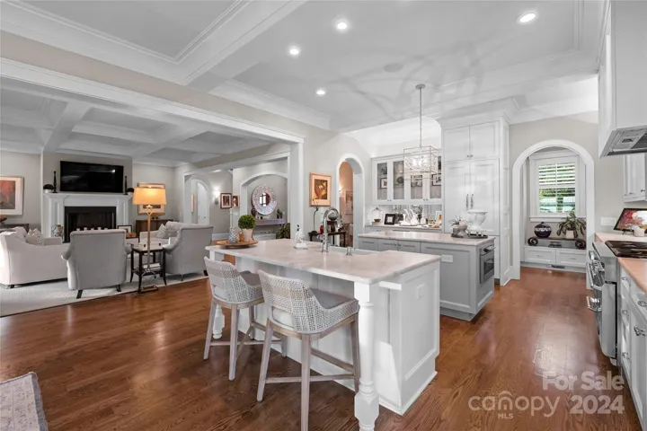 Enjoy Lake Norman's panoramic sunsets from this impeccably built coastal retreat in the heart of Cornelius. Artfully constructed recently by master builder Patrick Joseph Distinctive Homes, this casually elegant home exudes southern lake lifestyle with its close proximity to the renowned Peninsula Club and center city Charlotte's dynamic cultural and dining scene. A gourmet kitchen, private office, and scullery adjoin light filled open living spaces which adjourn to a relaxing covered outdoor veranda servicing the entire water side space of this gracious home. The main floor also features an ample master retreat, elevator, & private laundry. The upper level offers four ensuite guest suites, an upper media/card room, and an over garage nanny suite accessed via a discretely placed secondary rear stairwell. At over 5000 square feet on two floors, this home is perfectly designed to capture the essence of today's desire for casual elegance & efficient use of space. Pool rendering available