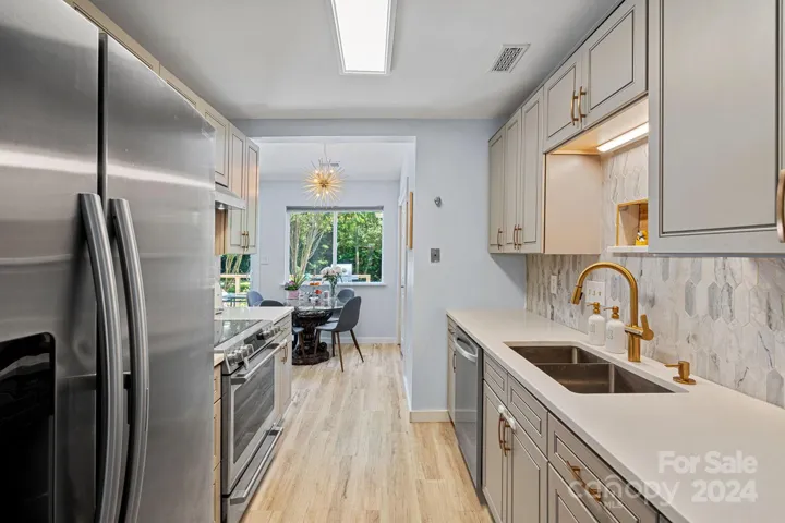 Nestled at the end of a tranquil street, this property offers the epitome of privacy and serenity. A fully fenced backyard with extended deck and fire pit provides a secluded oasis, allowing glimpses of the enchanting woods leading to the creek beyond. This meticulously updated home exudes modern elegance, featuring quartz countertops and a designer tile backsplash in the kitchen, complete with soft-close cabinets for added convenience. The primary bath showcases luxurious quartzite countertops and shower adorned with integrated light features, nestled within the stone for a spa-like ambiance. Enhanced with recent exterior upgrades including exterior doors, hardboard siding, energy efficient windows, and garage door. This home is thoughtfully appointed with custom blinds and updated light fixtures throughout. Don't miss this rare opportunity to own this modernized retreat.