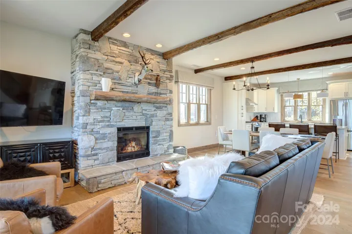 This luxurious home in the premier Blue Ridge Mountain Club boasts custom elegance and breathtaking views throughout its multiple levels. On the first floor (2nd level), there's an ensuite bedroom with a deck and a converted garage serving as a den and game room. The second floor (3rd level) features a stunning open-plan kitchen, dining, and living area with high-end finishes and appliances, leading to a deck with an outdoor fireplace. The top level offers a designer-finished primary suite with vaulted ceilings and a private deck, along with a bunkroom and laundry room. The lower level includes another bedroom or flex room, a deck with a hot tub, and ample storage space. This home is just a short stroll to various amenities and outdoor activities such as The Lookout Grill, Ascent fitness center, Jasper Restaurant, hiking trails, ATV/UTV trails, creeks, and more! SHORT-TERM RENTALS ARE ALLOWED in this part of the development and the home is currently used in part as a vacation rental.