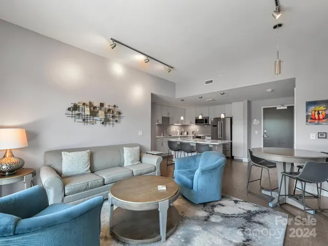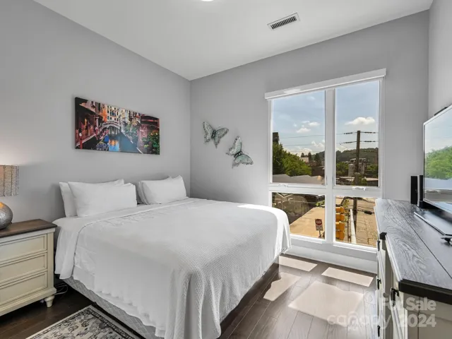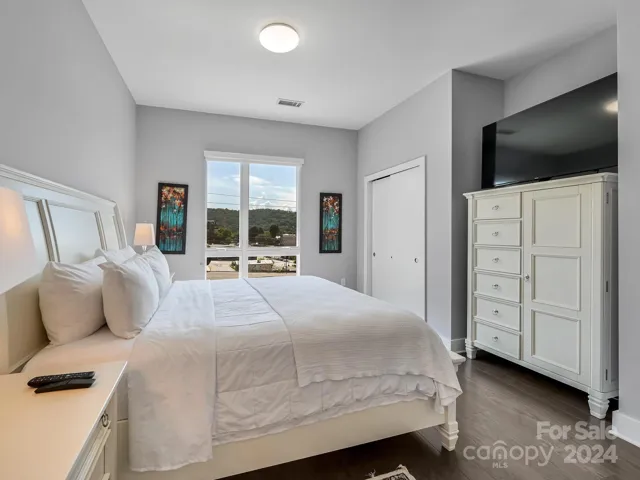 Permitted STR. Luxury 2 Bedroom 2 bath condo, Income Producing, fully furnished. Located in the central part of downtown and in the south slope. Convenient to all of downtown, near breweries and shopping. Watch the beautiful sunrises from your private balcony. It features open floorplan, wide-plank wood floors, breakfast bar, modern kitchen, quartz counters, s/s Bosch appliances, tiled shower,/floors, additional storage room, 1 deeded parking space in the secured parking garage, low utility costs, low HOA dues. Purchase unit furnished and continue to rent it out short term with professional mgmt. 7 story bld- 39 units. Let it pay for itself. Close by are live theater, music venues, and art galleries and breweries. STR and VRBO. Building has excellent history as a vacation rental. Condo is well appointed with modern furnishings. Large balcony overlooking the great city of Asheville. Two generously sized bedrooms. Seller is ready to sell