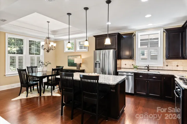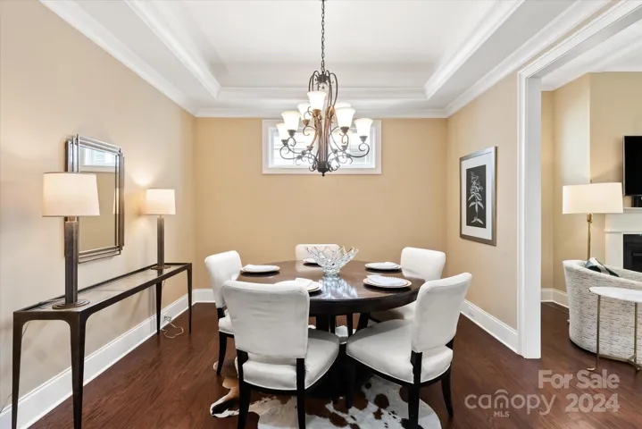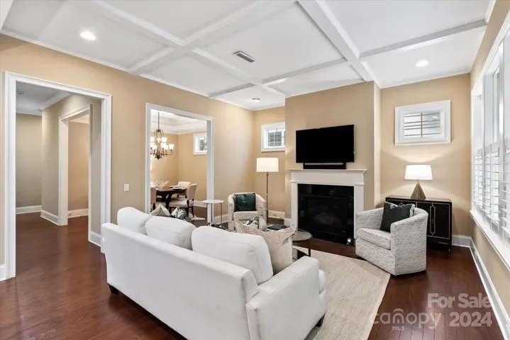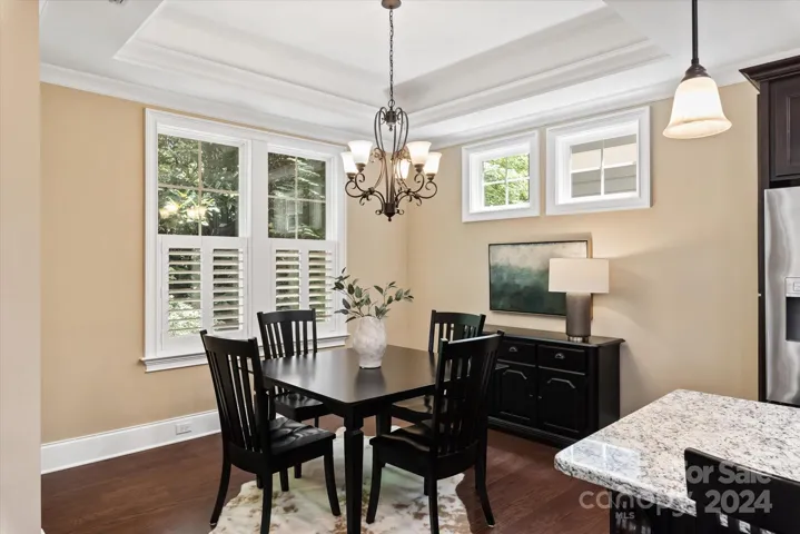 Welcome to Charndon Village, a gated Simonini community nestled off Sardis Rd. This 2-story single family home lives like a townhome, and boasts the finest features including elevator, 10' ceilings, detailed moldings, coffer ceiling, recessed lighting, all synonymous with luxury properties. Enjoy the open concept floor plan with a welcoming Great Rm fireplace and formal Dining Rm, complemented by an open Kitchen with a Breakfast area. The elevator provides convenient access to the generously-sized Primary Suite upstairs, alongside two secondary Bedrooms joined via a Jack & Jill bath and an open Den/loft area, perfect for office space or recreation. With the Laundry upstairs, generous storage and a spacious 2-Car Garage, this home offers practicality without compromising on luxury. And the private backyard is bordered by naturalized HOA property. Walkable to Boyce Park and the McAlpine Greenway trails, all while being just minutes away from South Park fine dining and exclusive shopping.