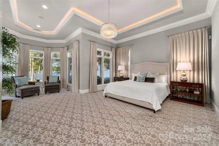 Welcome to this magnificent Lake Norman waterfront home boasting 6037 sq ft of luxurious living space. Situated on a sprawling 1.36-acre point lot with 360-degree views, this 5-bedroom/4.5-bath residence offers unparalleled privacy & serenity. Step inside to find a grand foyer leading into the spacious living areas, featuring soaring ceilings, hardwood floors, and panoramic windows that flood the home w/ natural light. The gourmet kitchen is a chef's dream, with high-end appliances, custom cabinetry, & a large island for entertaining. The primary suite is a true retreat, with a spa-like ensuite bath overlooking the lake. Each additional bedroom is generously sized with views from every window. The separate living quarters are perfect for guests or extended family. Outside, the expansive patio & terrace are the perfect spot to take in the breathtaking views. The backyard offers endless possibilities for outdoor entertaining & recreation.