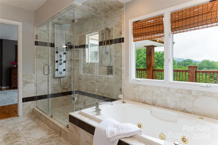 A serene retreat located just minutes from the picturesque town of Weaverville, NC, this beautiful home offers 4 bedrooms, 4 baths, and 4,637 sq ft of living space. Large windows fill the interior with natural light and frame the breathtaking, year round, long range views. Two cozy fireplaces, perfect for chilly evenings, create a warm and welcoming atmosphere. Entertaining is a breeze in the open floor plan that flows seamlessly on the main level and then out onto the expansive covered decks. The spacious primary bedroom is a tranquil haven with an en-suite bathroom, providing a private escape for relaxation. The basement offers a 2nd full kitchen and even more living space. The large backyard offers plenty of space for outdoor activities, gardening, and enjoying nature. Located just minutes from downtown Weaverville, this home offers easy access to charming shops, local restaurants, and recreational opportunities. Only 15 minutes to downtown Asheville, too!