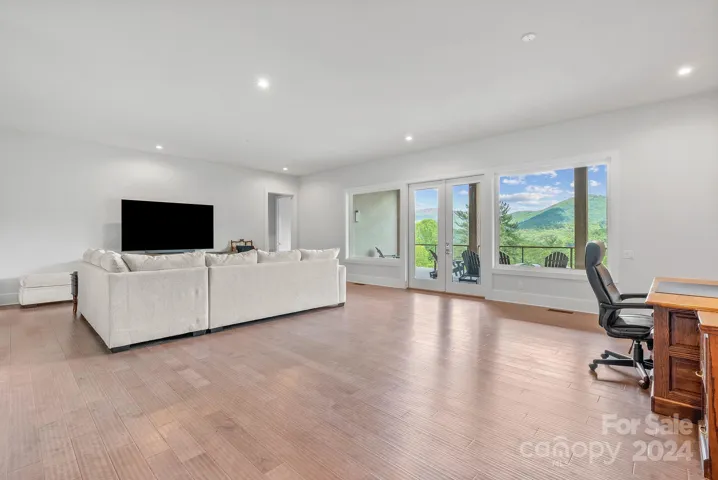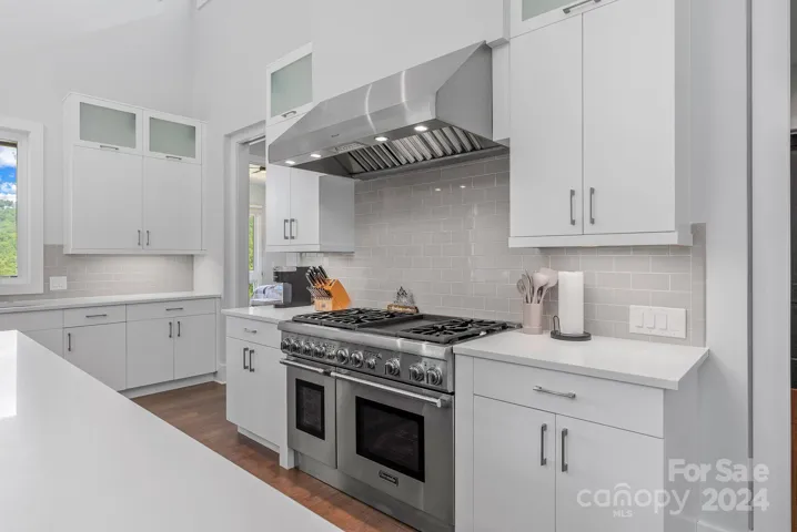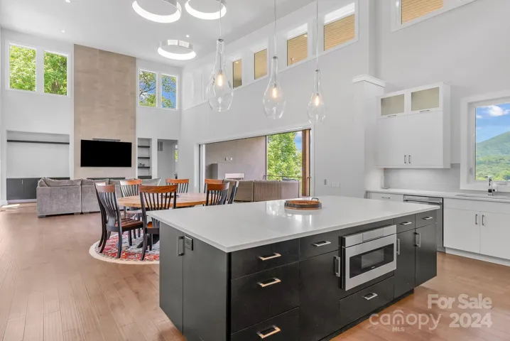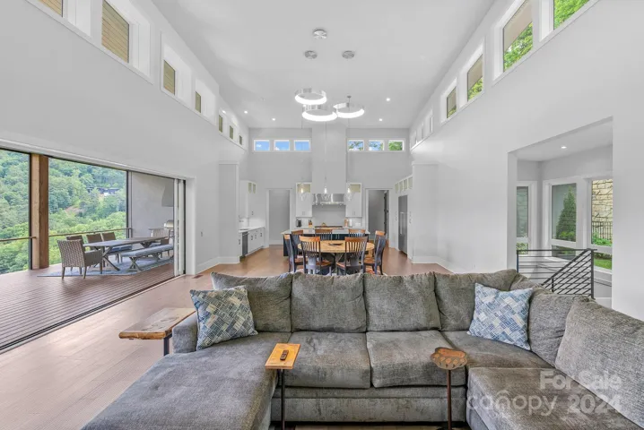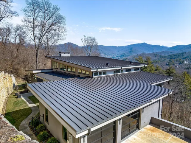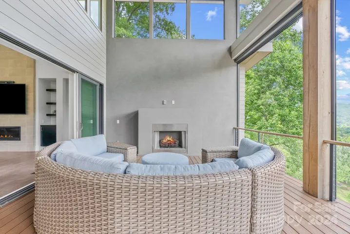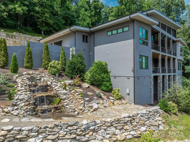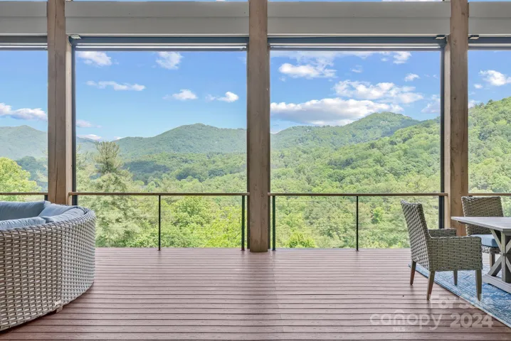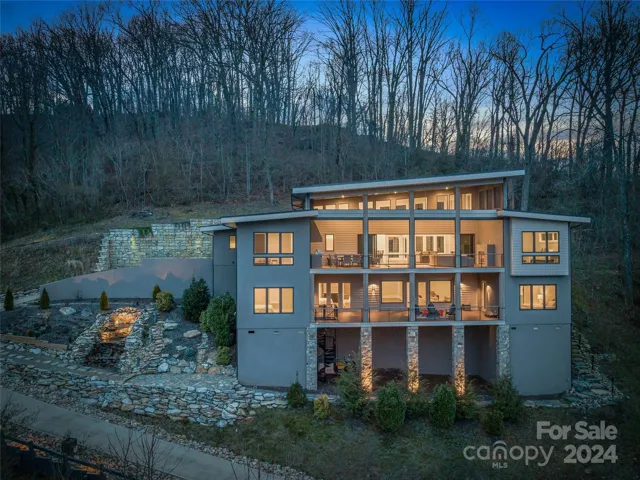 Perched majestically above Beaverdam Valley in North Asheville, this contemporary mountain retreat epitomizes unparalleled luxury. Revel in tranquil mornings and evenings, gazing across expansive mountain vistas from every impeccably designed room. Bask in the embrace of natural light that floods the expansive open living space, adorned with floor-to-ceiling windows that frame the breathtaking scenery. Seamless indoor-outdoor living is achieved through wall-to-wall sliding doors opening to a sprawling covered deck. There are automatic screens, a built-in grill with dining area, and a fabulous sitting space with a gas fireplace which invites you to savor the serene mountain panorama. Four view facing suites with deck access and two additional versatile bedrooms. Exterior upgrades include a gated area for pets, a multi level cascading waterfall, and professional low maintenance landscaping. This remarkable luxury modern dream home offers the perfect move-in-ready option on the market!