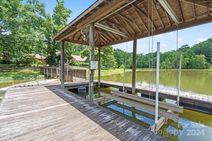 Back on market! Discover your piece of paradise over 350' of waterfront with NO HOA in the desirable Palisades community. This custom home offers breathtaking vaulted ceilings and single-level living. The gourmet kitchen boasts professional-grade appliances, granite countertops, a custom marble backsplash & breakfast bar. Relish the vaulted great room with a full stone fireplace & built-in cabinets. The primary suite features a walk-in closet, marble bath, garden and stand up glass enclosed shower with direct access to a walkout porch. All baths showcase granite or marble finishes, and the home is handicap accessible. Outdoor living include a private boat ramp, pier, floating dock, oversized 4-car garage/boat storage, circular drive, and porte-cochere. It doesn't stop there walk outside to your personal heated salt water swimming pool, covered patio area with bar, two large porches with panoramic lake views and a built in fire pit. Fall in love with over an acre of lakefront living!