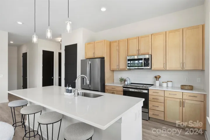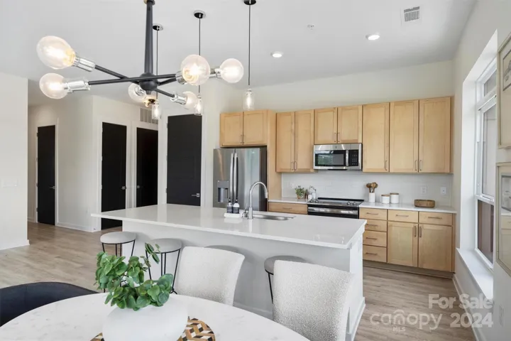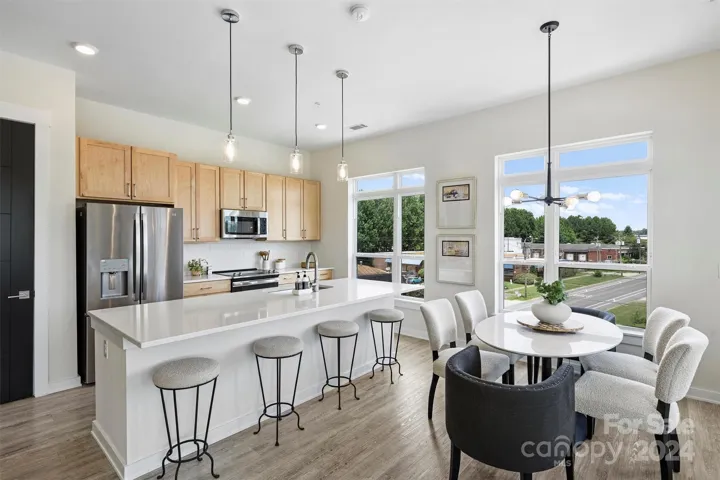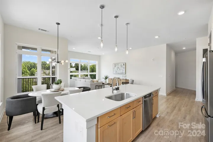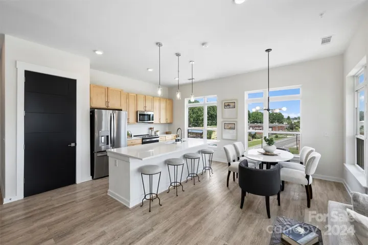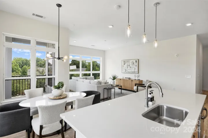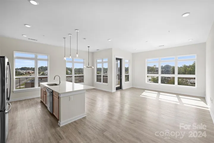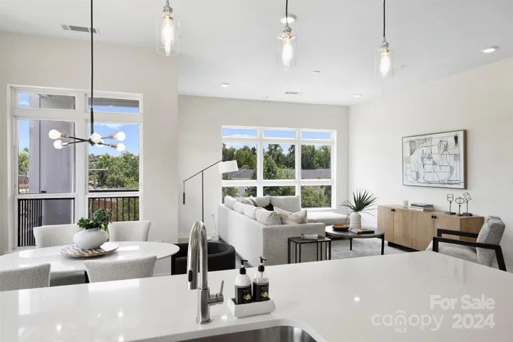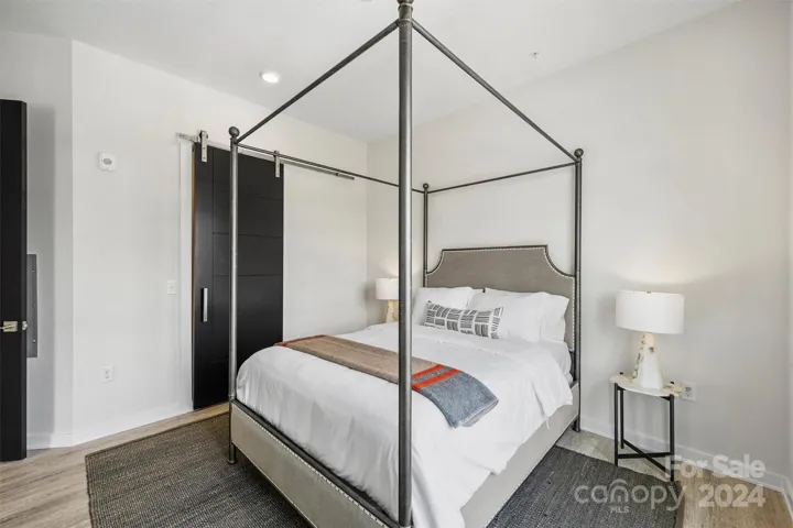 Galleries NoDa, NEVER been occupied, lg 2 bed condo (Guggenheim FP) light and bright corner unit with high ceilings! This penthouse open floor plan condo is convenient to the NODA strip (The Arts District). Upgrades include cabinets, countertops, appliances, bathroom and flooring options, washer/dryer/fridge, barn doors and more designer accents. Covered porch off unit living area. Easy living lifestyle offering walkability to restaurants, bars, live music venues, coffee shops, shopping and movie theatre/arts ctr. Nearby LYNX Light Rail at the 36th Street station provides convenient access to Uptown or South End. Enjoy the 3500 sq ft outdoor amenities terrace complete with fire pits, gas grills, and entertainment areas/seating amongst lavishly landscaped areas...perfect for entertaining family and friends. Unit includes additional storage unit and TWO assigned parking spots. Secure entrance building and gated parking garage. Additional guest parking spots in garage and on street.