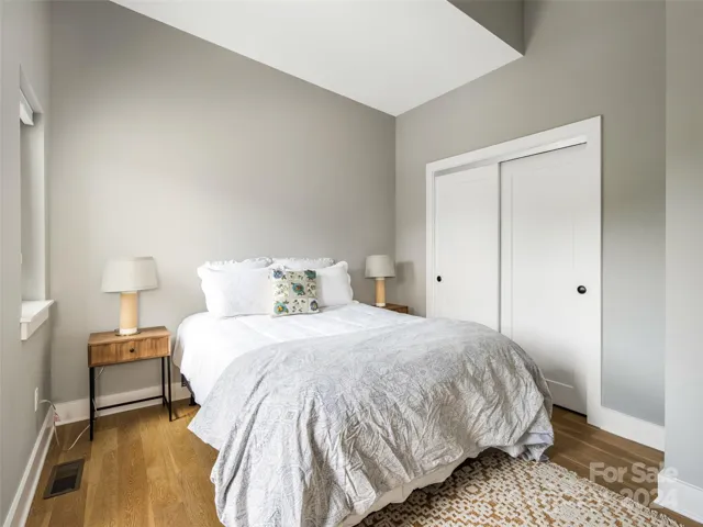 You will love everything about this stunning 3 story townhouse including the elevator, high end finishes, modern lighting, expansive windows and hardwood floors. A bright, spacious and cheerful great room with 10 ft ceilings is revealed from the entryway, providing plenty of room to sprawl, dine, and relax whether alone or in a group. The kitchen with quartz countertops, gas range, built-in microwave and stainless farmhouse sink is fully equipped for most of your culinary adventures. But why bother when you are only two miles from the heart of downtown Asheville? Guest will enjoy the privacy of their ground floor quarters while the family remains upstairs. The primary bedroom suite awaits you with its large walk-in closet and shower, dual vanity and private patio. The laundry is just down the hall. At some point in the day, dream a little dream on one of your back porches. Rest your eyes on a beautiful woodland landscape without a house or person in sight. Welcome home.