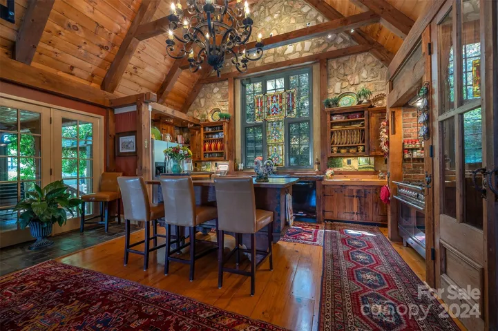 Enjoy the quiet life of The Traces, with nearly seven acres of pasture for your horses, in this stunning and elegant custom post-and-beam home with tongue and groove ceilings, beautiful interior and exterior rock work, antique doors, custom cabinetry and large wood-burning fireplace. Dine al fresco on either of the verandas or covered areas. A lovely 19 x 50 swimming pool and covered patio are just steps away. When you’re not riding the extensive FETA trails your horses will live in style in the four-stall, post-and-beam barn featuring a 9 x 17 tack room with laundry and an 11 x 22 office w/ shower room. This property includes two paddocks of just under an acre each and approximately 6.8 acres pasture in the common area. The farm is within minutes of Tryon, Landrum and Columbus as well as the three area equestrian competition venues. Roof is brand new.