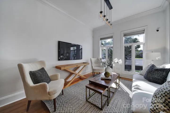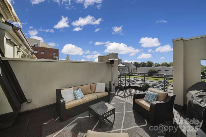 Luxury awaits in this stunning brownstone style 4-story townhome located in Charlotte's historic Fourth Ward. With 3 bedrooms and 3 full bathrooms, plus 2 half bathrooms, this home has plenty of space for comfortable living. The fourth level boasts a bonus room with access to a rooftop terrace that offers breathtaking views of the city. An extendable awning and outside gas fireplace makes outdoor living available in all weather conditions. Inside, the townhome features 10 ft ceilings and gorgeous hardwood floors throughout, as well as a convenient ELEVATOR for easy access to every floor. The kitchen boasts Kitchen Aid appliances including a 6 burner gas stove and a keeping room with gas fireplace There is a 1 car attached garage and there are also guest spaces on site. There is an extra parking space available next door in a secure covered garage that can be purchased for $10,000. The 715 N Church pool next door is available for hot summer days. Walk to all the city has to offer!