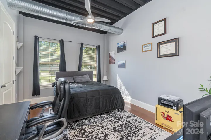 Large, contemporary 2 bed and 2 full bathroom condo located on the first floor in 28th row! Walk to NoDa and Villa Heights restaurants, retail, breweries, the light rail and more. Corner unit with 10' ceilings, exposed ductwork and stained concrete floors. Large kitchen space with dedicated pantry, plenty of cabinets, granite countertops and stainless steel appliances. Primary bedroom features an en-suite bathroom and both bedrooms have walk in closets. There is a separate office nook for working from home and a private walk out patio on the back side of the building next to a green space. Perfect for pet owners! Dont miss the 5th floor rooftop terrace with views of Uptown Charlotte! Dedicated parking space is #25 with additional parking in the back of the building and on street. Water/Sewer included with HOA dues and Washer, Dryer, Fridge all convey!